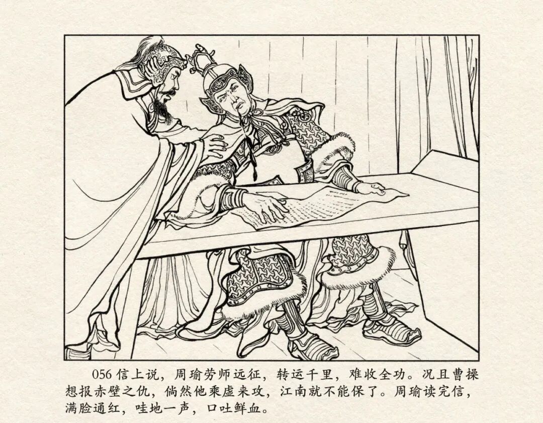 第五十六回:曹操大宴铜雀台,孔明三气周公瑾的故事。也就是本套连环画第三十回《三气周瑜》这一册。