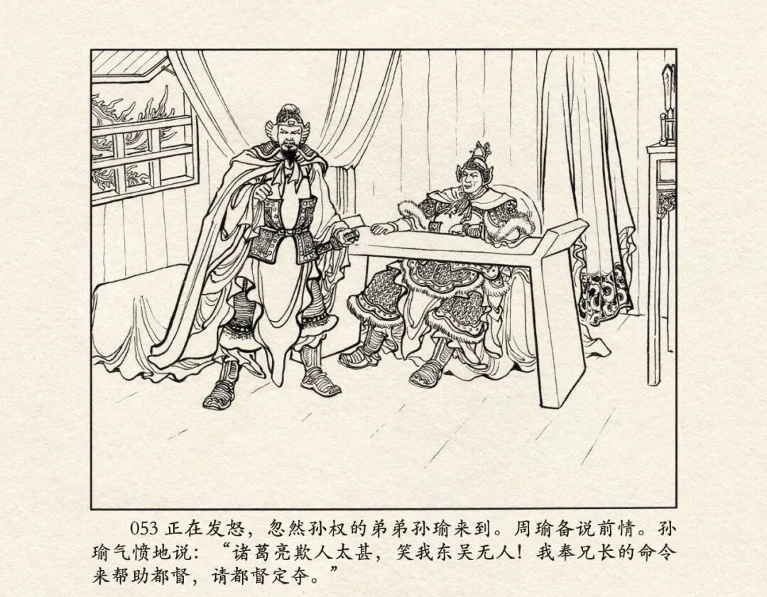 第五十五回:玄德智激孙夫人,孔明二气周公瑾。本套连环画中第二十九回《甘露寺》。