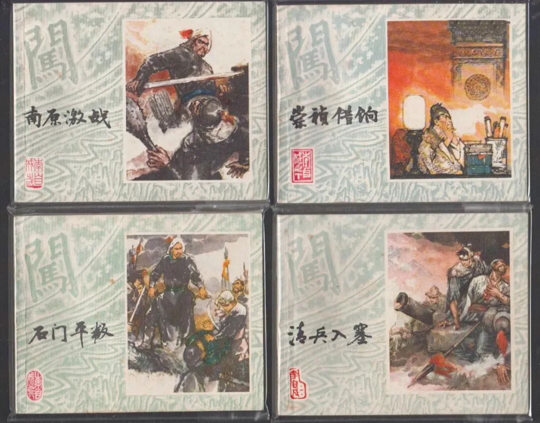 崇祯九年(1636年),初代”闯王“高迎祥聚集了三十多万农民军人马攻打滁州。结果却被卢象昇率领的二万官军杀的溃不成军,只得撤进了连绵起伏的郧阳山区。崇祯十年(1637年)初,升任为兵部尚书的杨嗣昌于公于私都想尽快剿灭农民军,为他老爹和他自己出一口恶气。他提出了“四正六隅,十面张网”策略,在全国范围内设置了十大围剿区域,欲图将农民军分割包围,然后一网打尽。此战中,李自成的精锐人马被杀得一干二净,只带着部将刘宗敏等十八人突出重围,躲进了陕西东南的商洛山。所以,这一次的突围可以说是李自成最凶险,最艰难的一次突围。施大畏的画技当然毋庸置疑,虽然用毛笔,风格是传统的水墨,但他的画从构图到人物,都有种西洋油画的立体感和厚重感。施大畏为上美李自成封面画了近10幅,笔法老辣豪迈,色彩明艳靓丽,传统水墨写意与油彩立体兼而有之,画中的人物或是激情洋溢,或是悲怆凌然,充满感染力,值得细品。