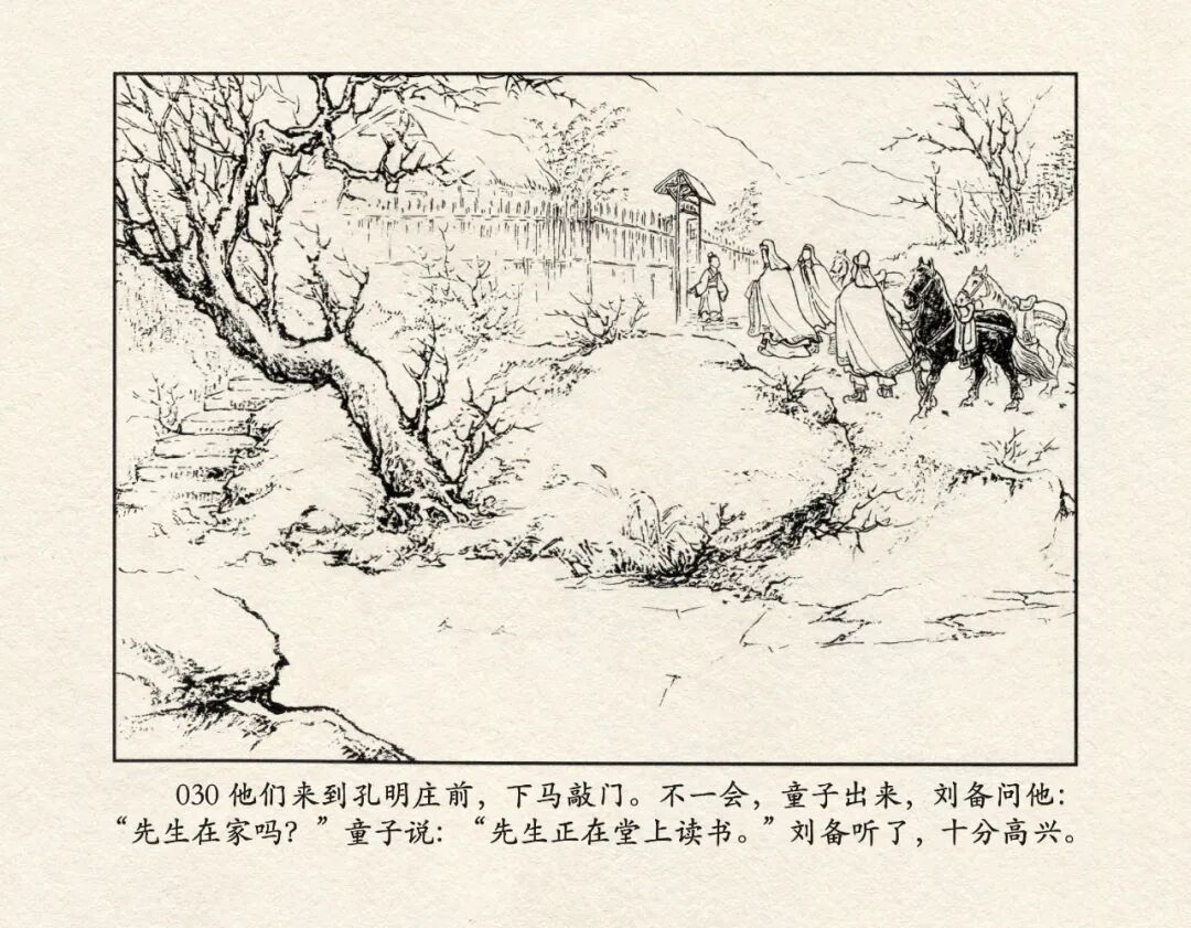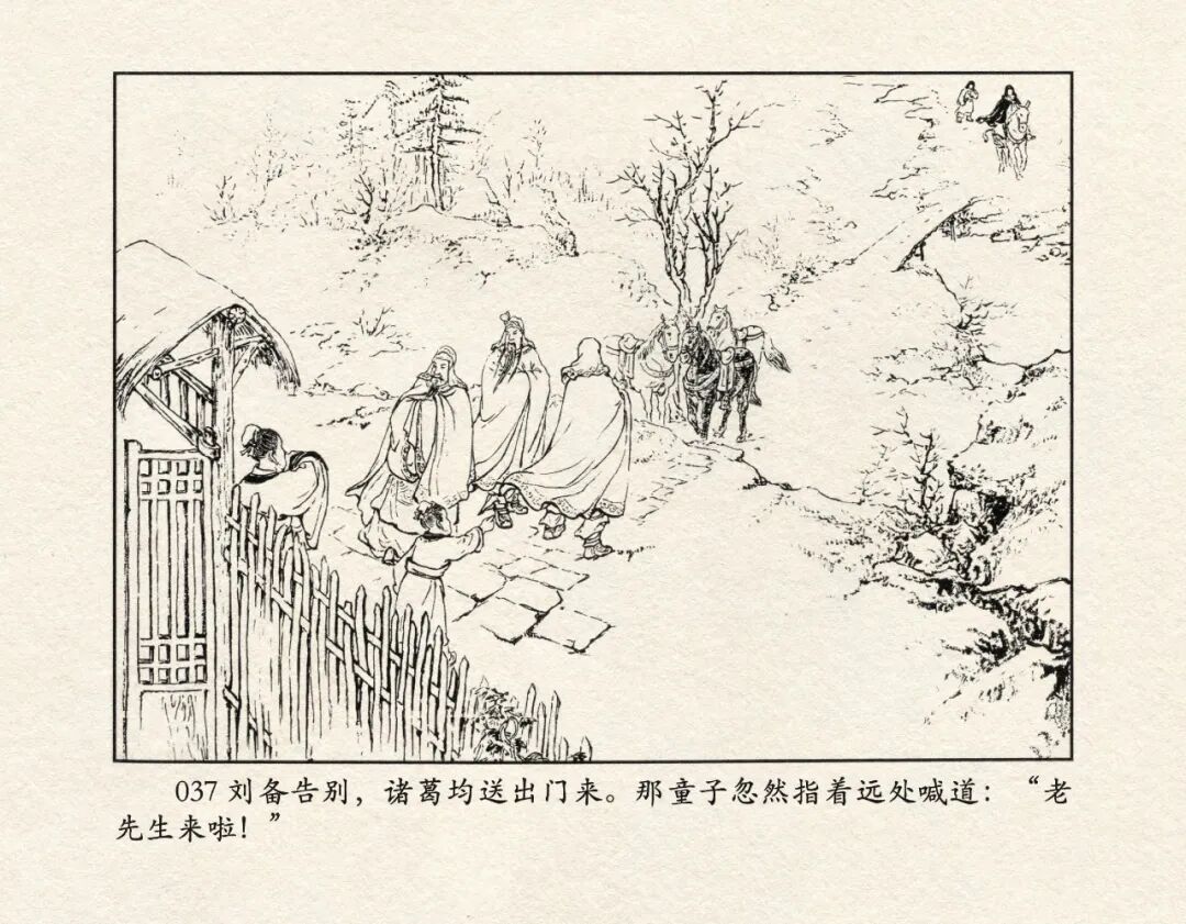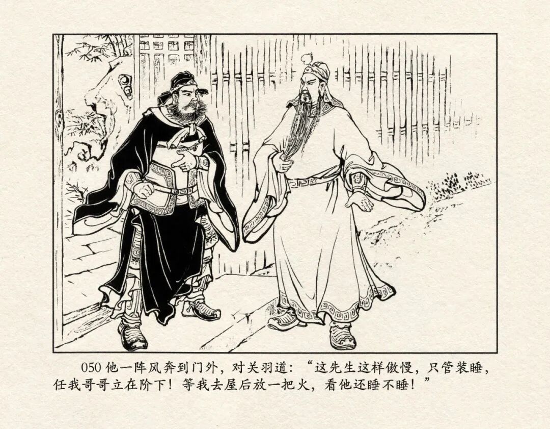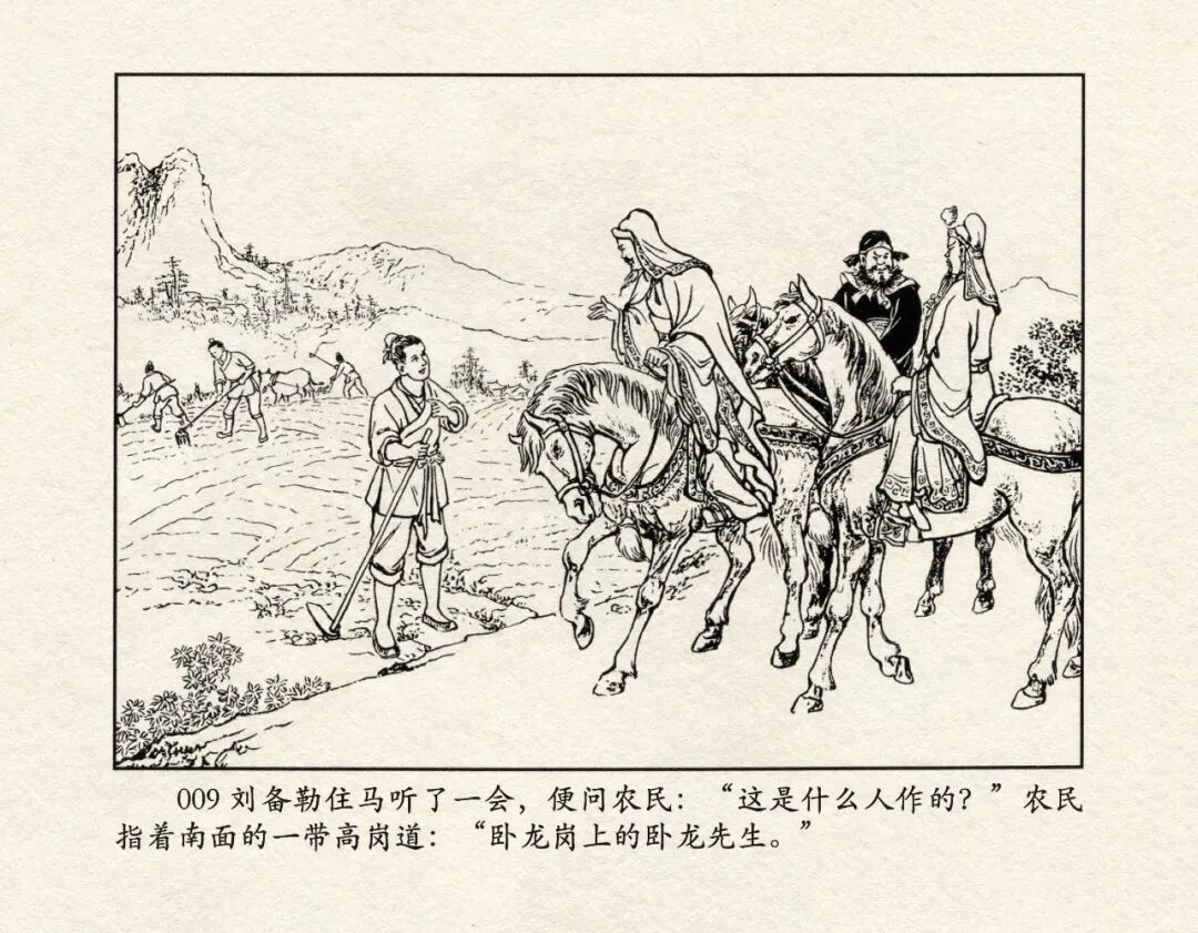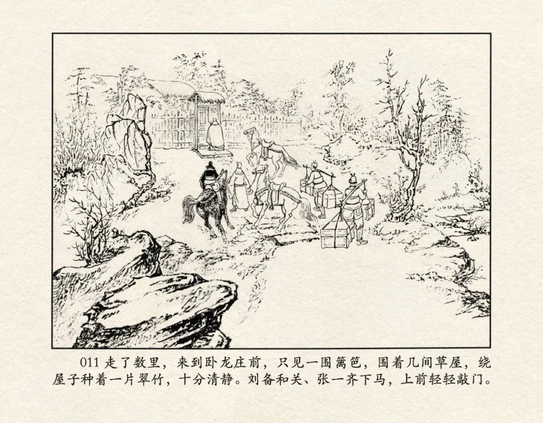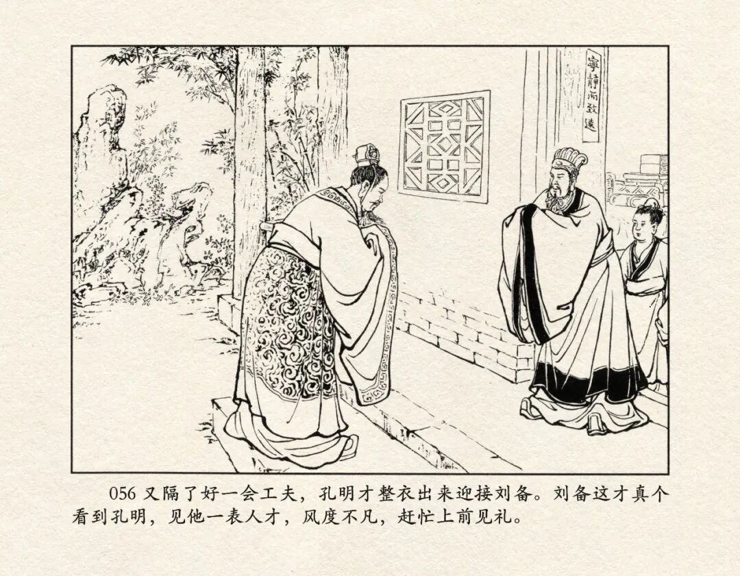 《三国演义》中诸多重头戏都和“三”有关系,比如“桃园三结义”、“三让徐州”、“三气周瑜”等,而最著名最有画面感的一场戏当然要数“三顾茅庐”。三顾之礼是极为隆重的礼节,通常在天子迎接德望极高的大儒才使用。对一个无官无职且年轻的人行此大礼,实在是极为反常。刘备这么做,除了表明对诸葛亮的重视,无疑是在向还处于观望态度的士人,表明自己对人才的渴望。也许刘备心中也是愿意做足了这个排场,等着好戏开场的。2、马中赤兔、人中吕布初登场。陈光镒连环画作品《董卓进京》