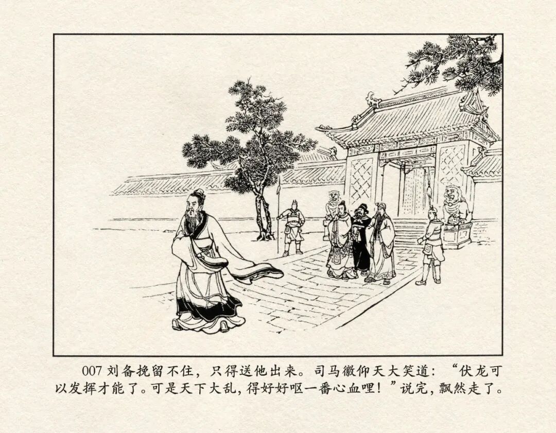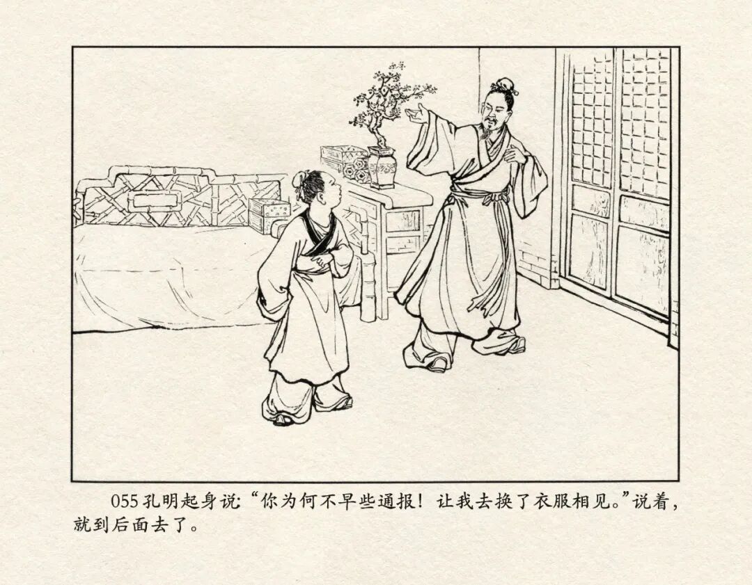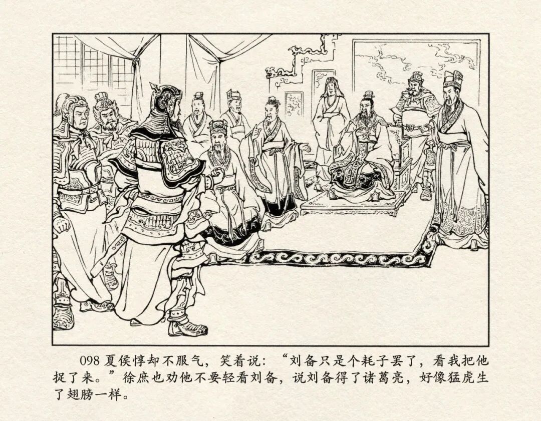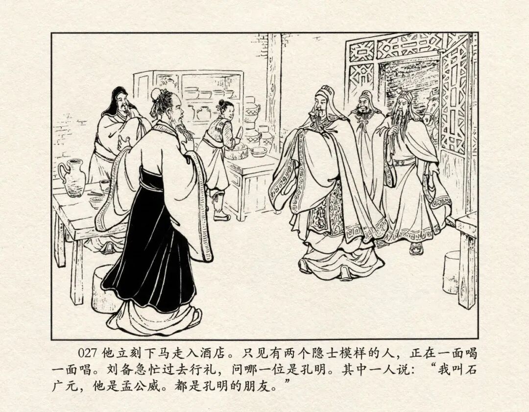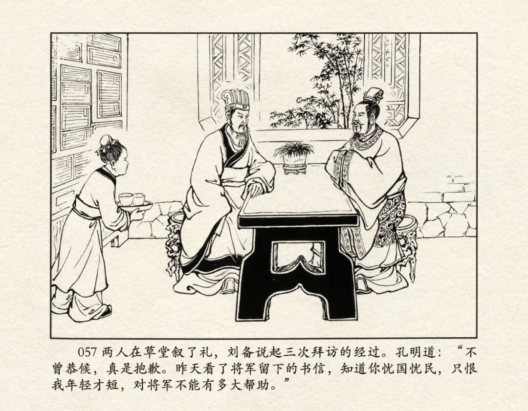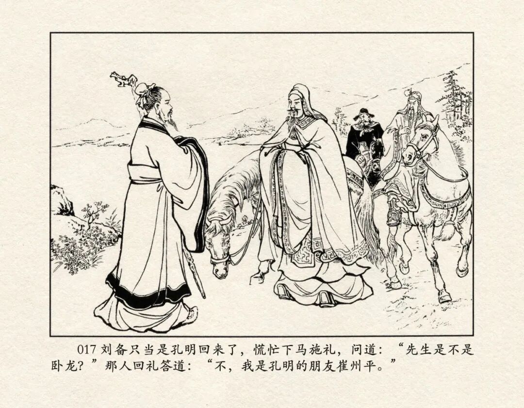 《三国演义》中诸多重头戏都和“三”有关系,比如“桃园三结义”、“三让徐州”、“三气周瑜”等,而最著名最有画面感的一场戏当然要数“三顾茅庐”。三顾之礼是极为隆重的礼节,通常在天子迎接德望极高的大儒才使用。对一个无官无职且年轻的人行此大礼,实在是极为反常。刘备这么做,除了表明对诸葛亮的重视,无疑是在向还处于观望态度的士人,表明自己对人才的渴望。也许刘备心中也是愿意做足了这个排场,等着好戏开场的。2、马中赤兔、人中吕布初登场。陈光镒连环画作品《董卓进京》