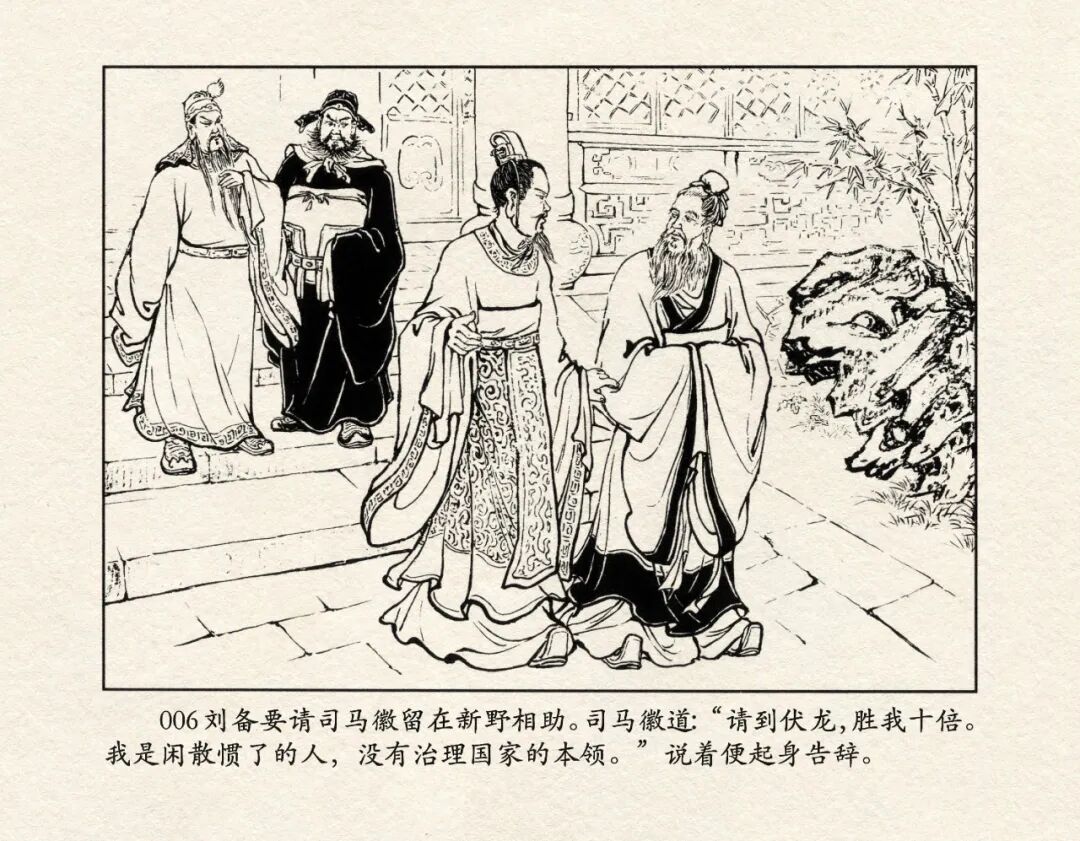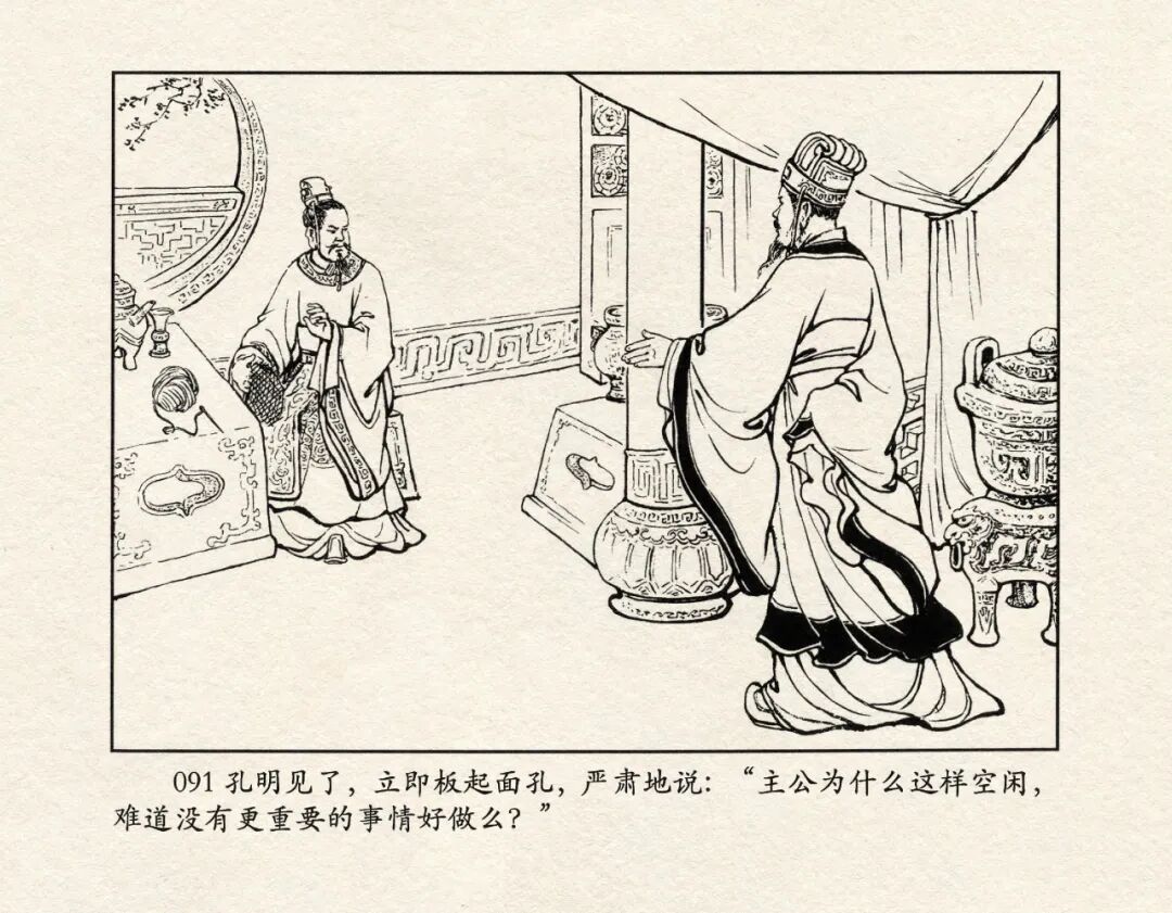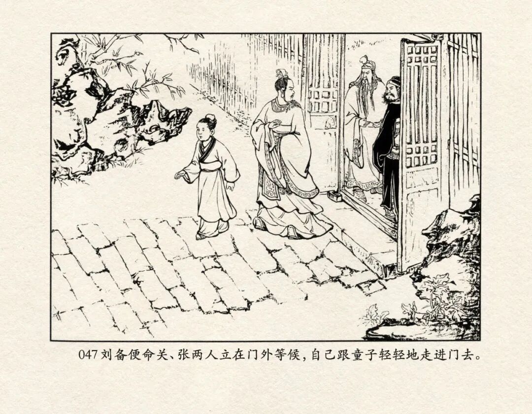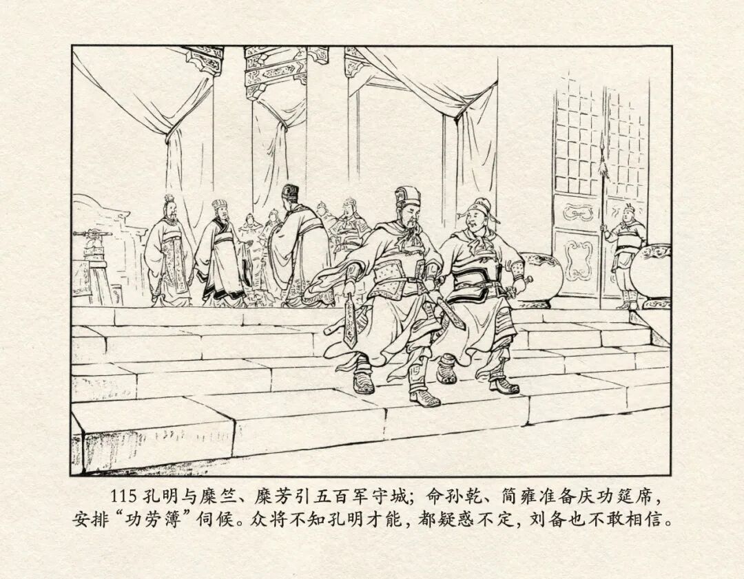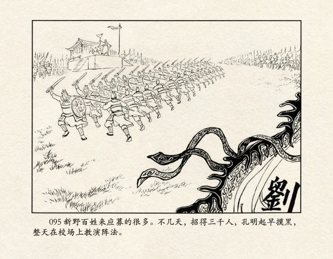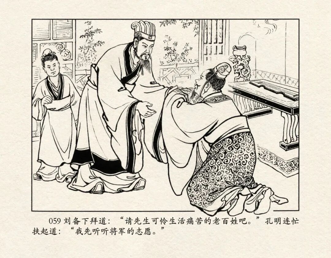 《三国演义》中诸多重头戏都和“三”有关系,比如“桃园三结义”、“三让徐州”、“三气周瑜”等,而最著名最有画面感的一场戏当然要数“三顾茅庐”。三顾之礼是极为隆重的礼节,通常在天子迎接德望极高的大儒才使用。对一个无官无职且年轻的人行此大礼,实在是极为反常。刘备这么做,除了表明对诸葛亮的重视,无疑是在向还处于观望态度的士人,表明自己对人才的渴望。也许刘备心中也是愿意做足了这个排场,等着好戏开场的。2、马中赤兔、人中吕布初登场。陈光镒连环画作品《董卓进京》