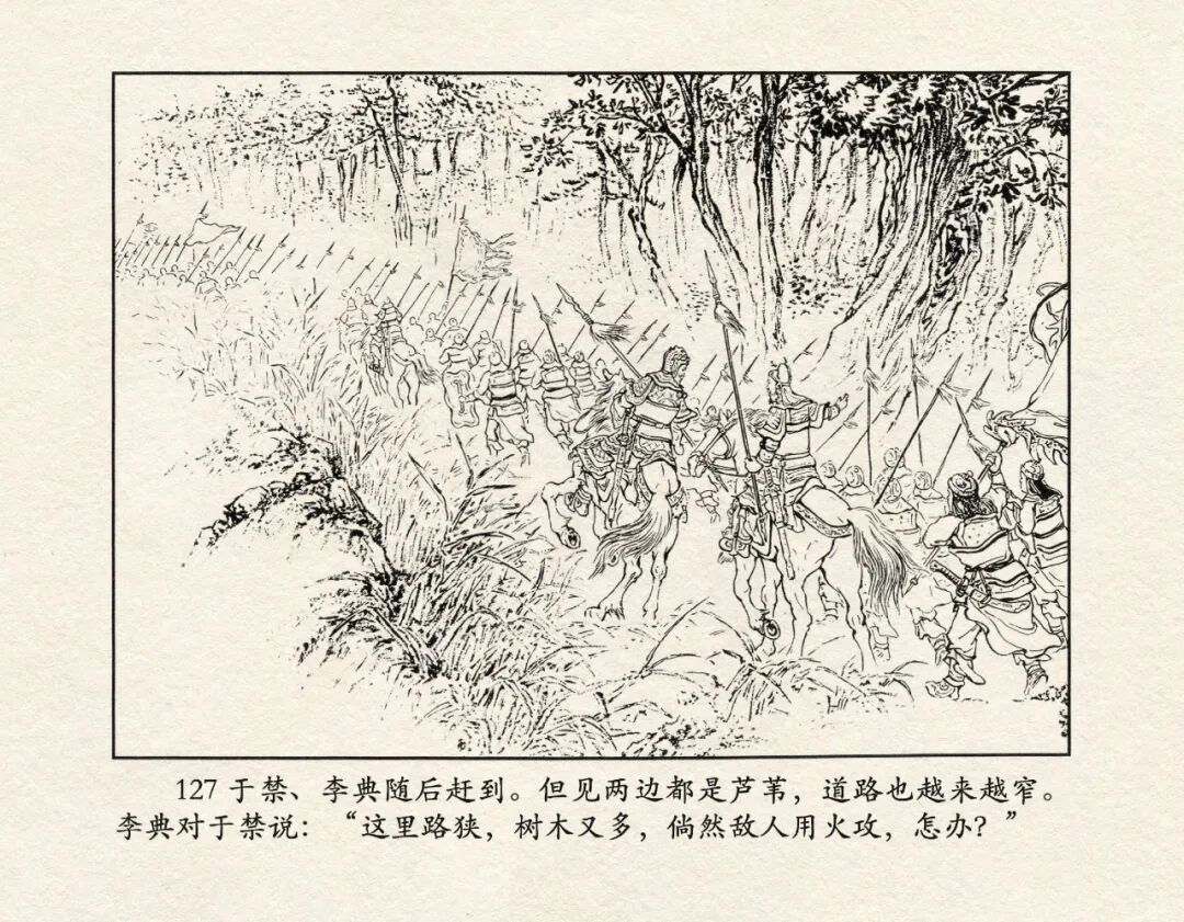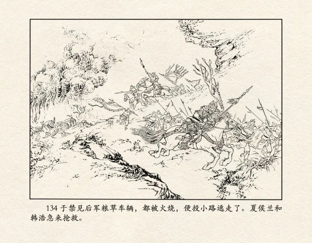 3、三英战吕布,虎牢关前逞英豪。刘锡永连环画作品《虎牢关》