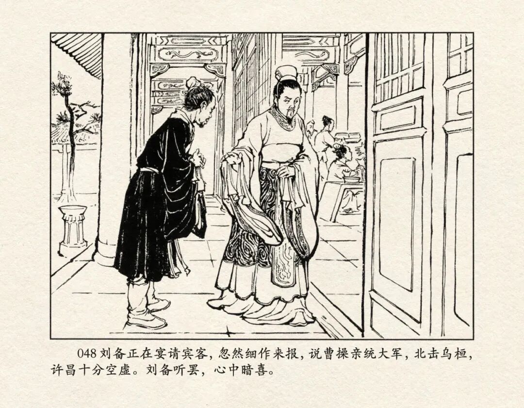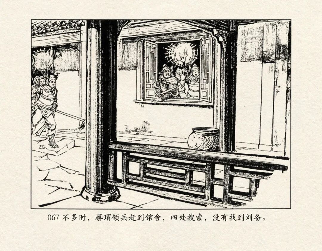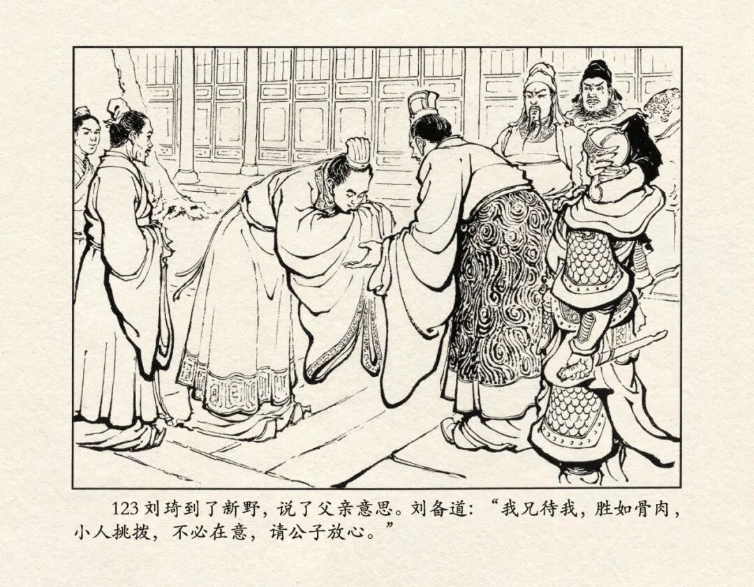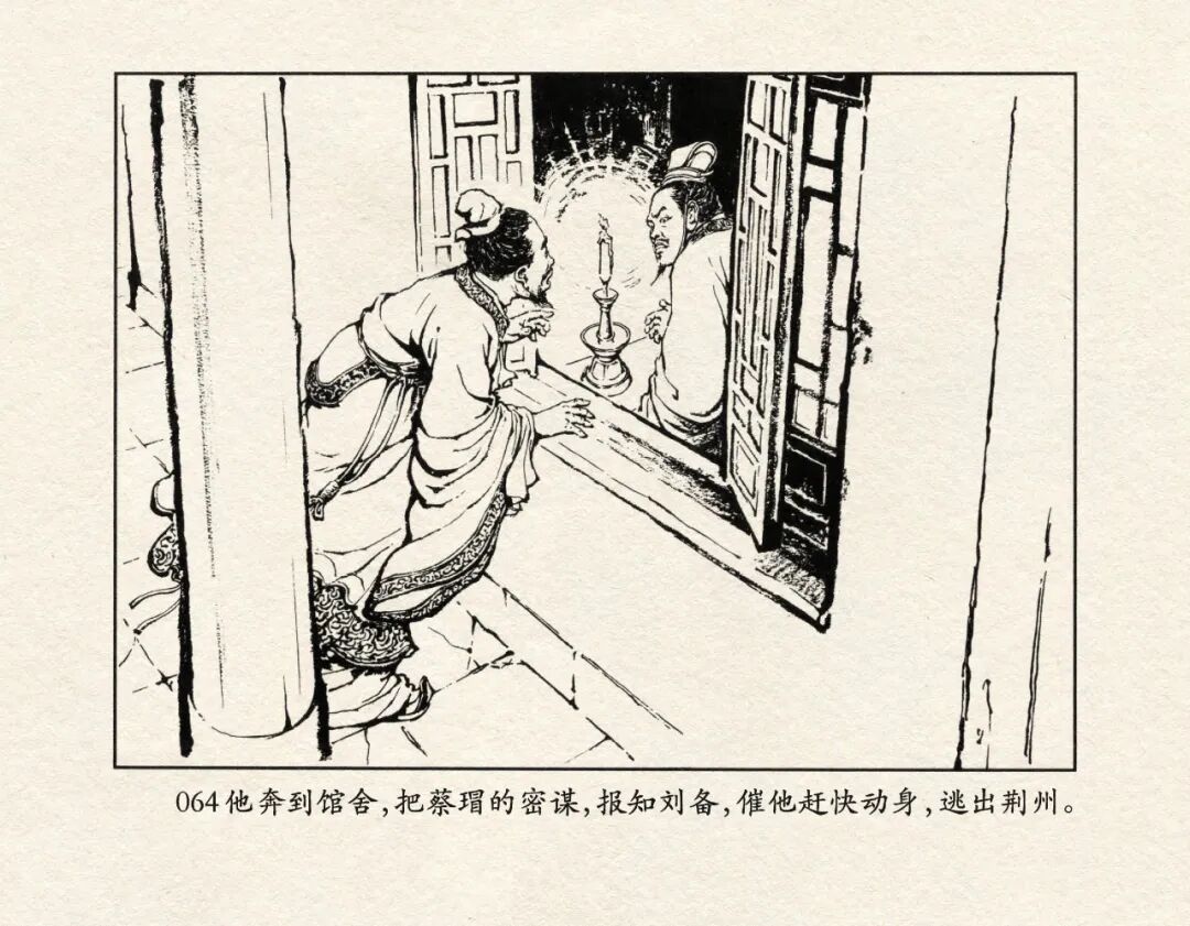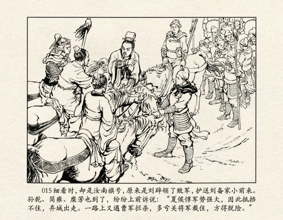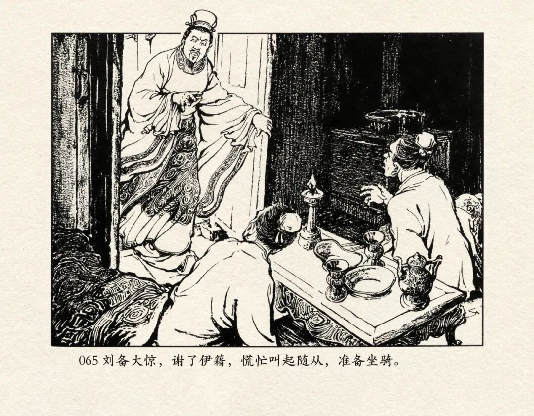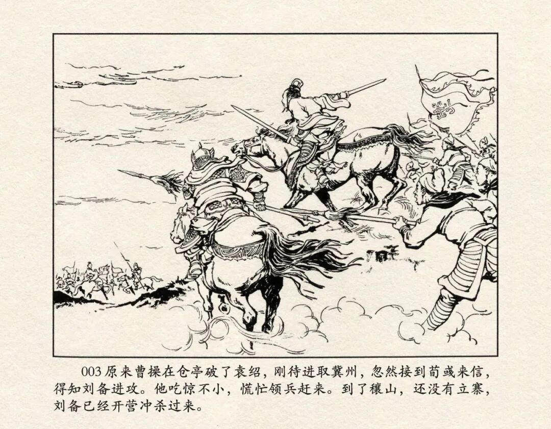 刘备跃马飞上西岸,策马扬鞭往西南而去了。蔡瑁引军追至檀溪边,见刘备已远去,不禁叹道:刘备真有神助,命不皆死!2、马中赤兔、人中吕布初登场。陈光镒连环画作品《董卓进京》