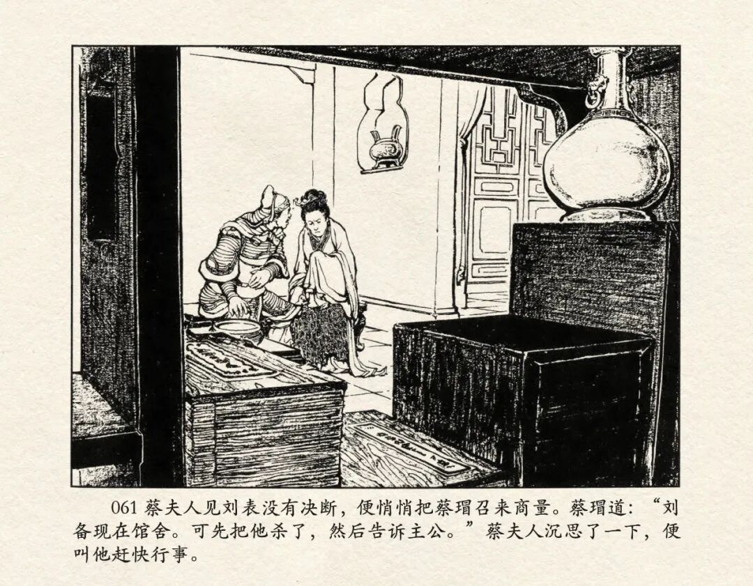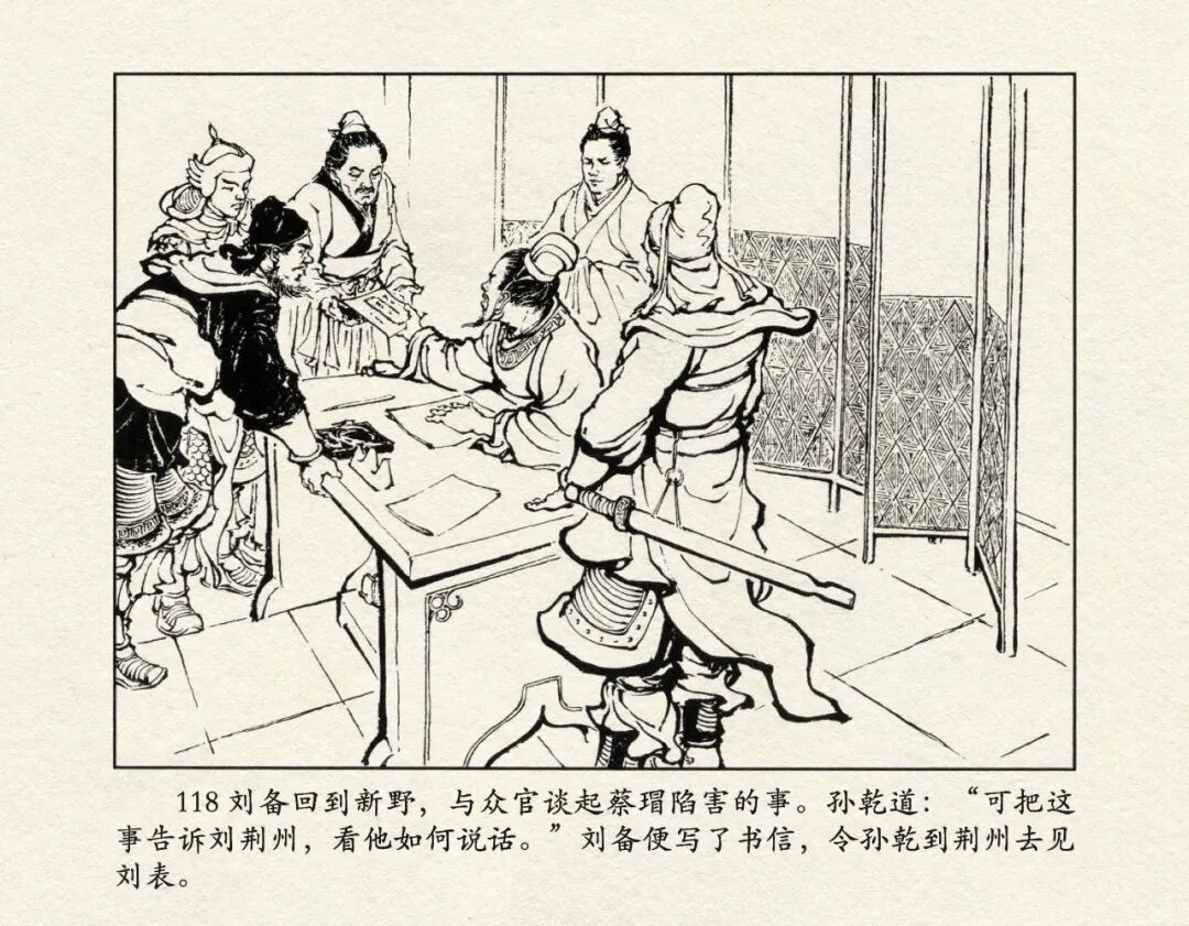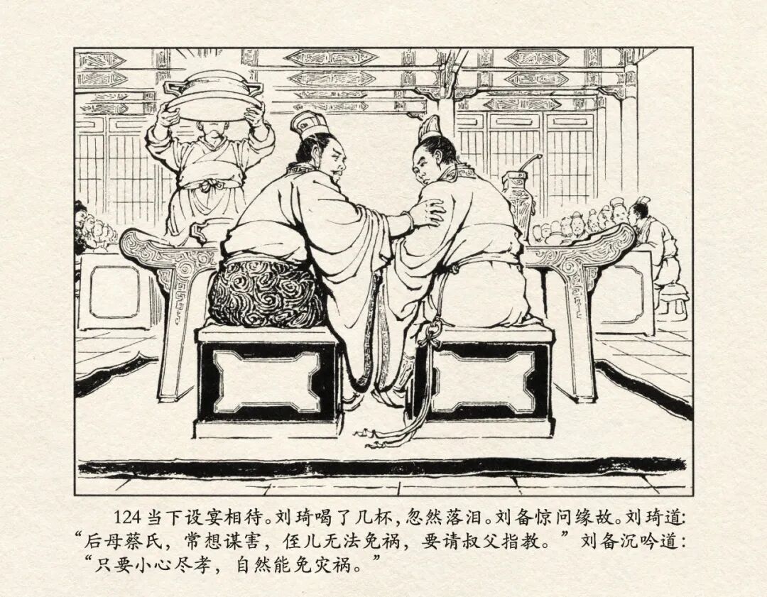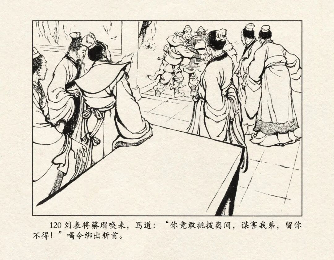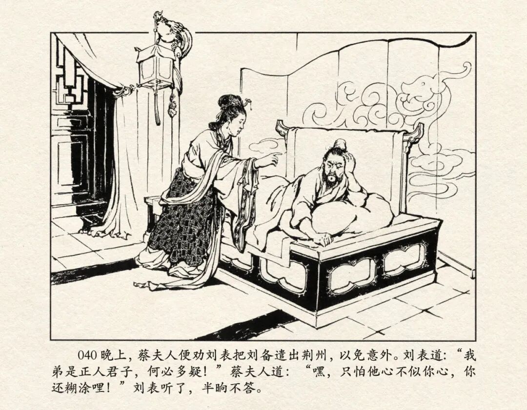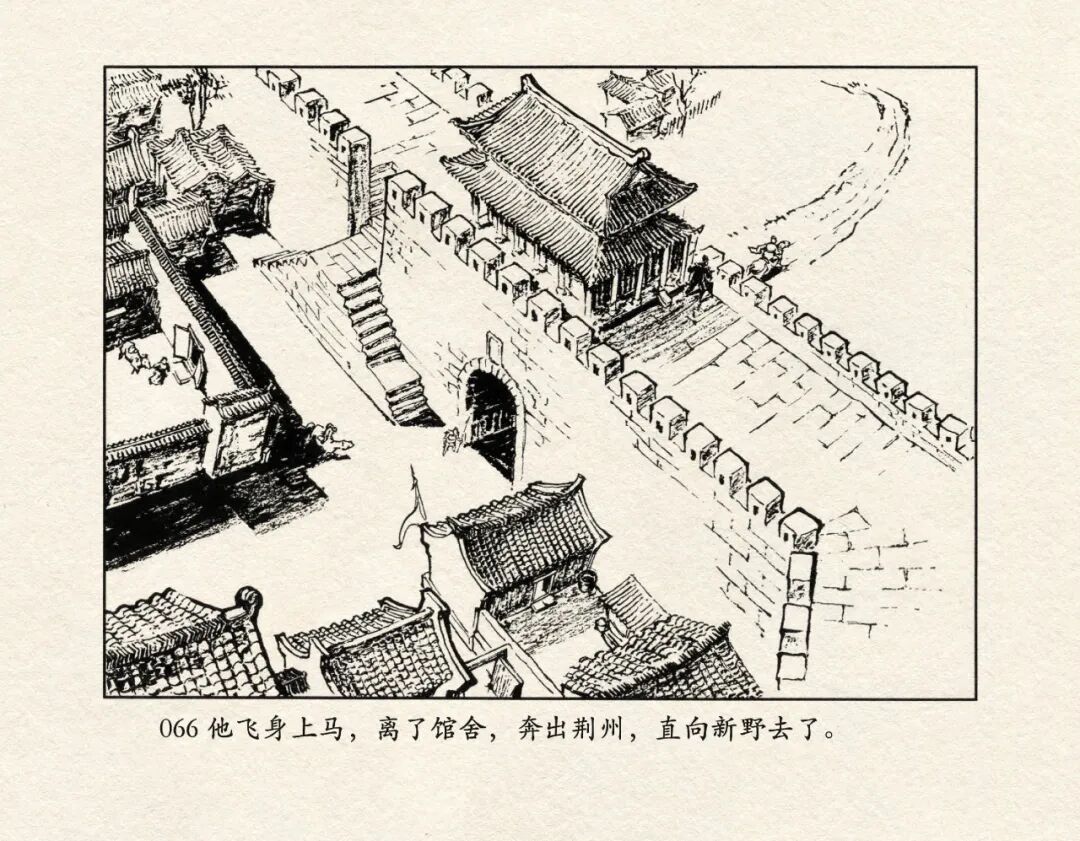 刘备跃马飞上西岸,策马扬鞭往西南而去了。蔡瑁引军追至檀溪边,见刘备已远去,不禁叹道:刘备真有神助,命不皆死!2、马中赤兔、人中吕布初登场。陈光镒连环画作品《董卓进京》