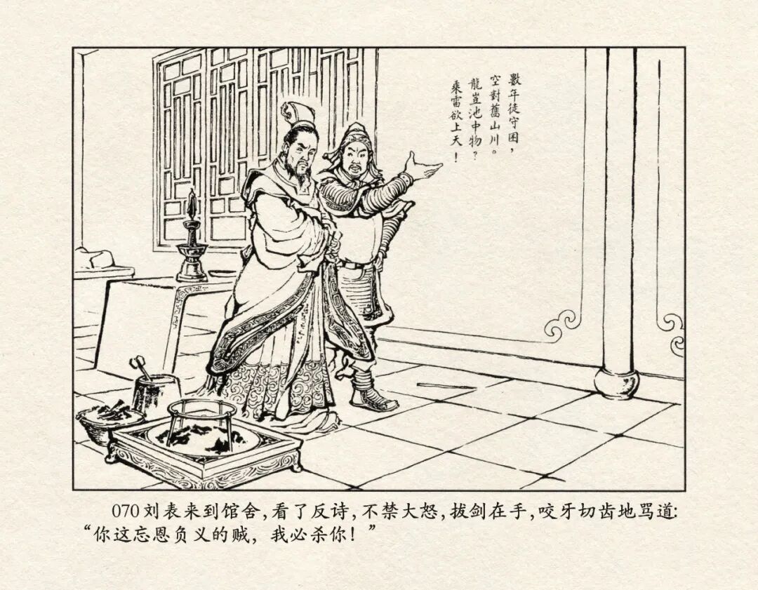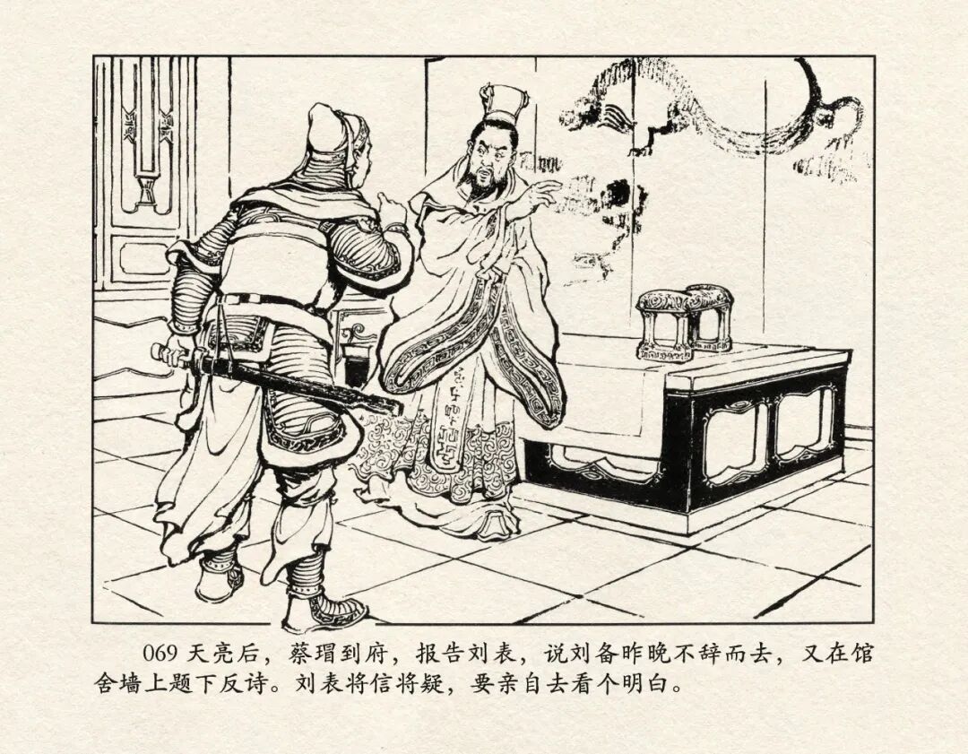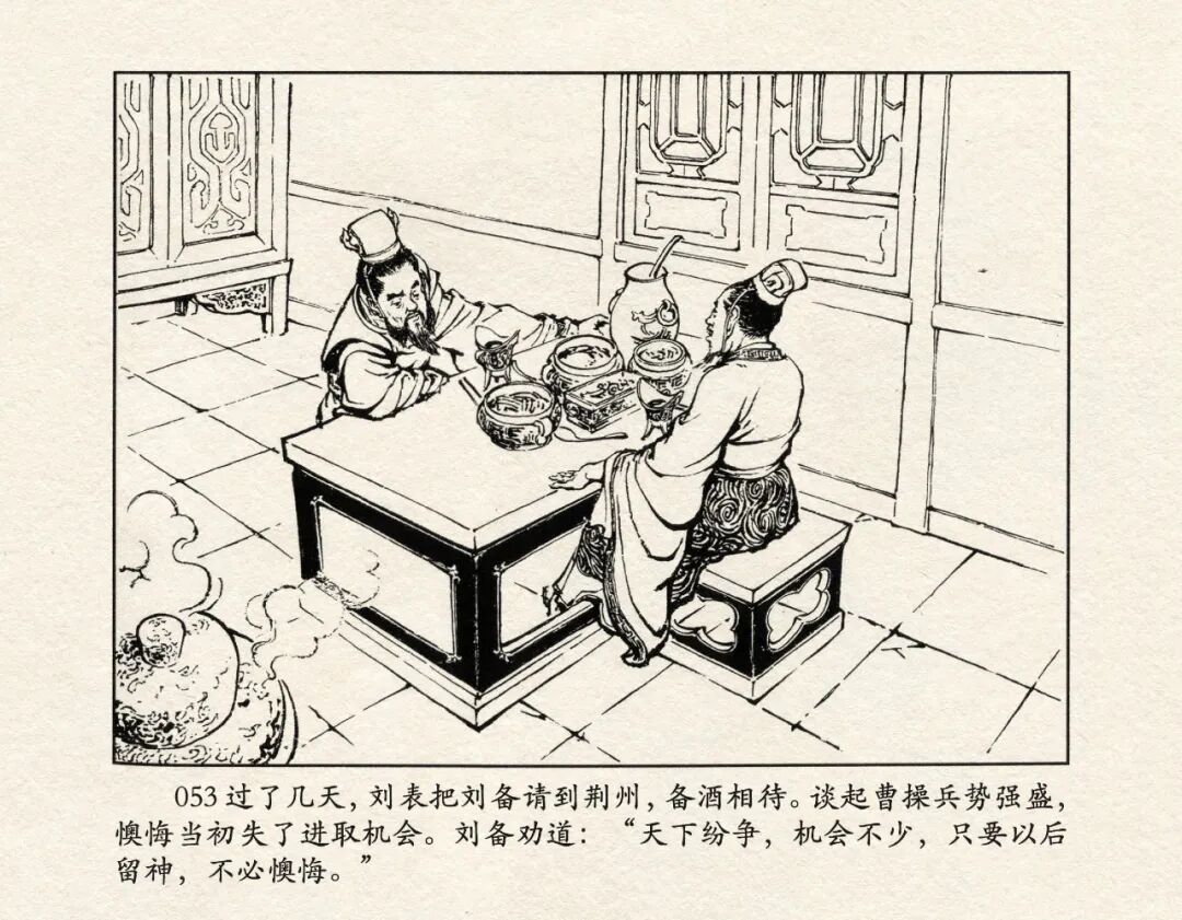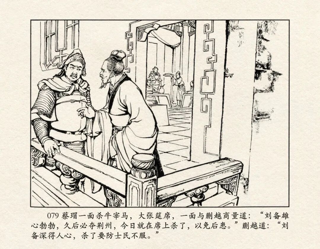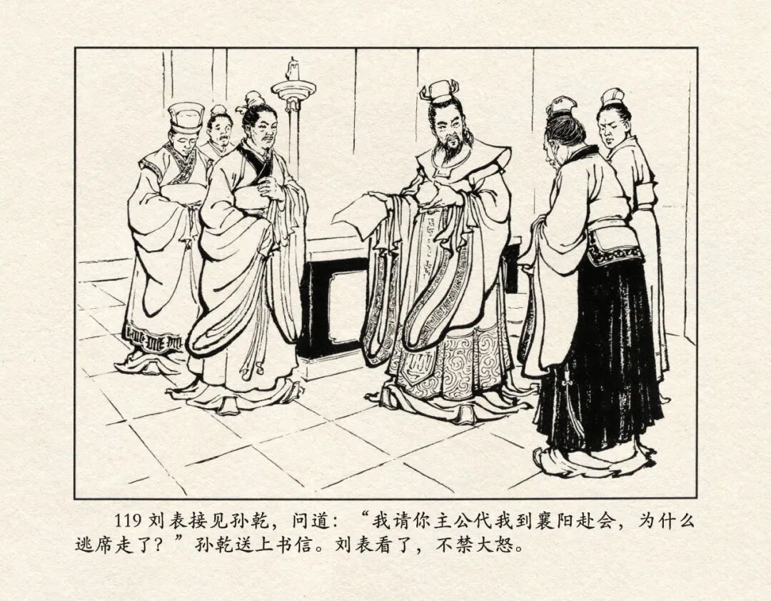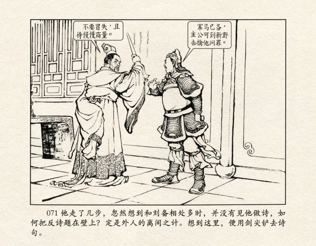 刘备跃马飞上西岸,策马扬鞭往西南而去了。蔡瑁引军追至檀溪边,见刘备已远去,不禁叹道:刘备真有神助,命不皆死!2、马中赤兔、人中吕布初登场。陈光镒连环画作品《董卓进京》