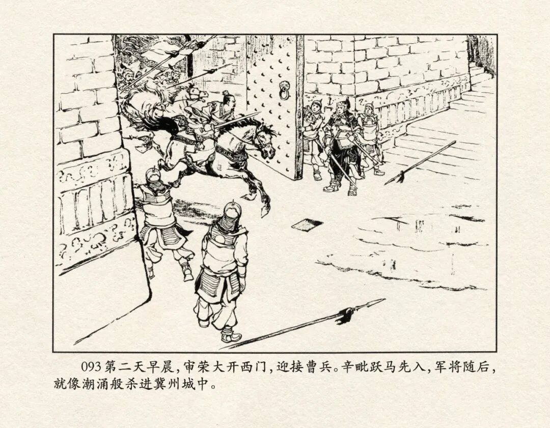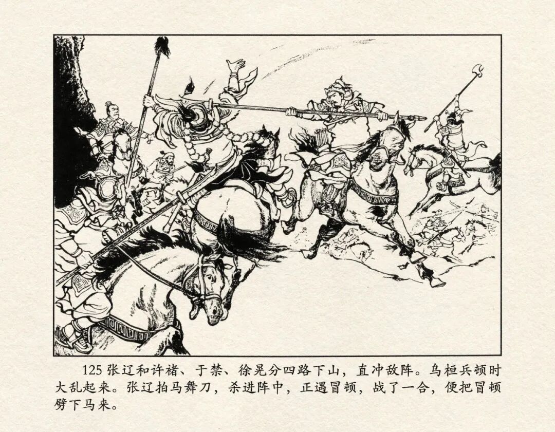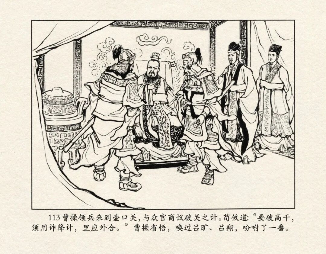 3、三英战吕布,虎牢关前逞英豪。刘锡永连环画作品《虎牢关》