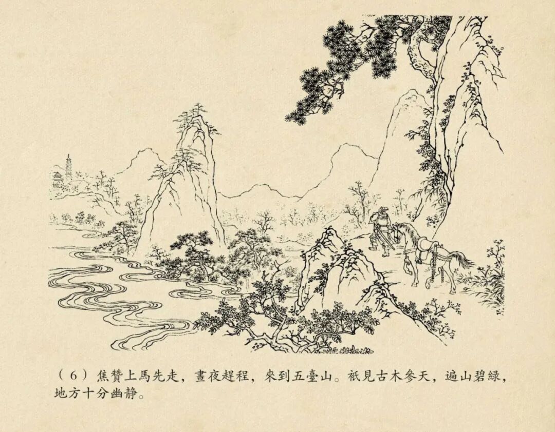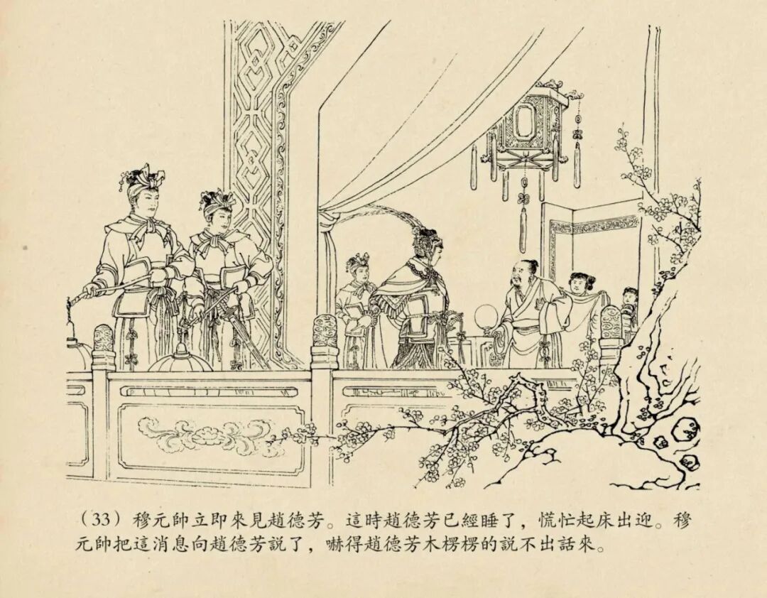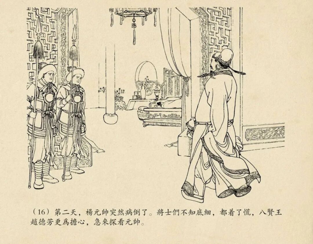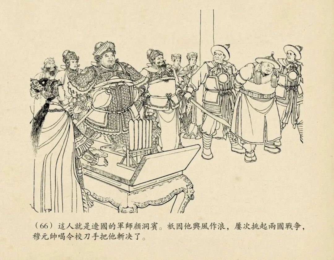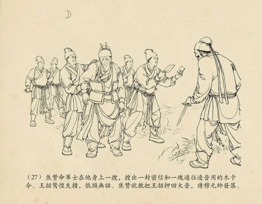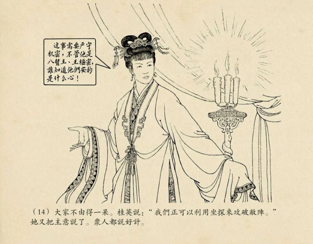 廖廖几笔就勾勒出马匹的肌肉线条,强劲有力;而马嘶声仿若耳畔,清晰可闻。敌将的盔甲笔笔精到,极富质感。那一箭就将护心镜射碎的雕翎箭,可见穆桂英箭法的高超精妙。