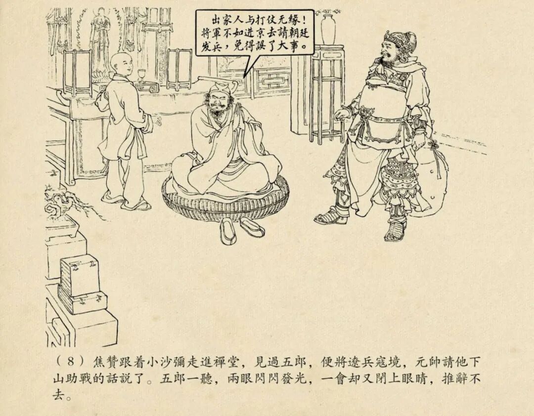 小沙弥杠着杨五郎的车轮斧,可见其深得五郎喜爱,长大后定能得五郎真传,武艺高强