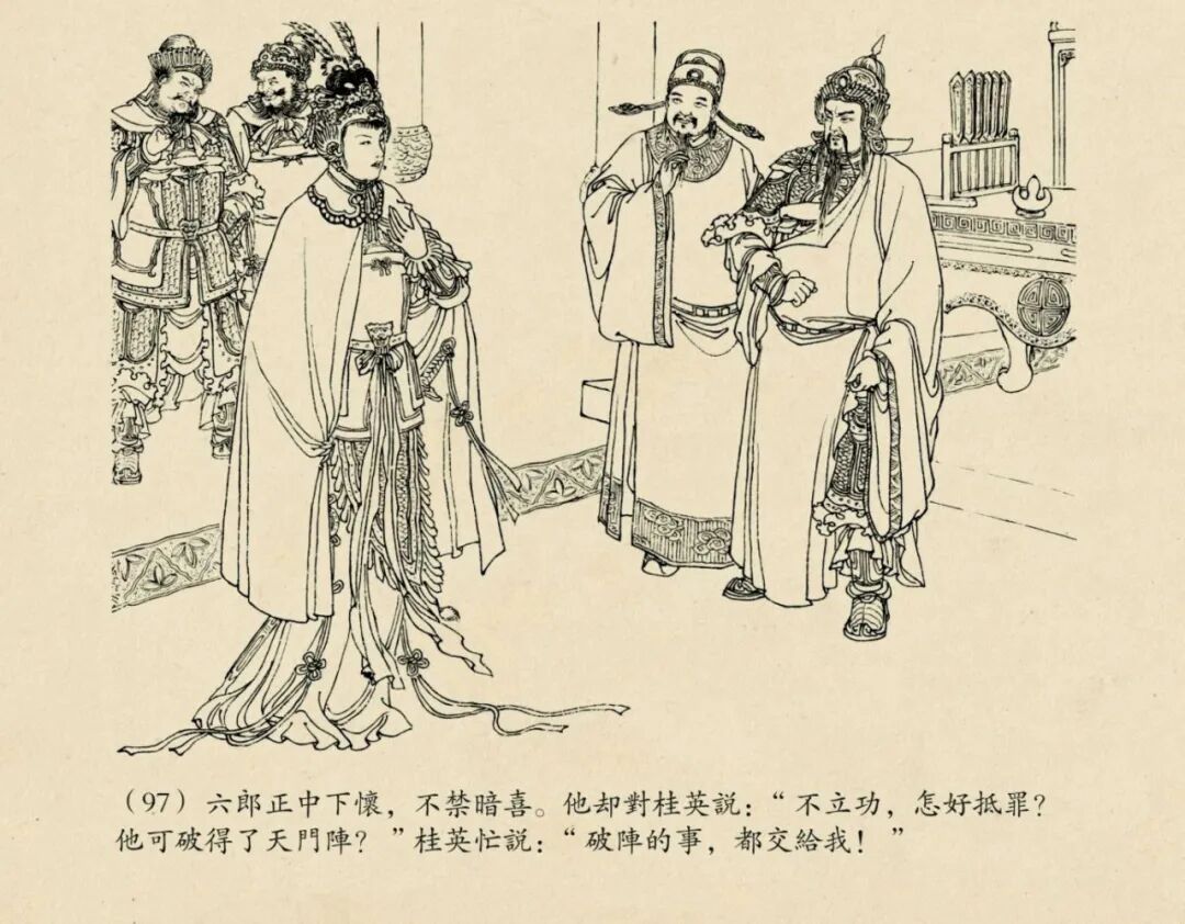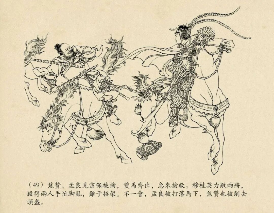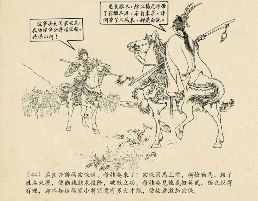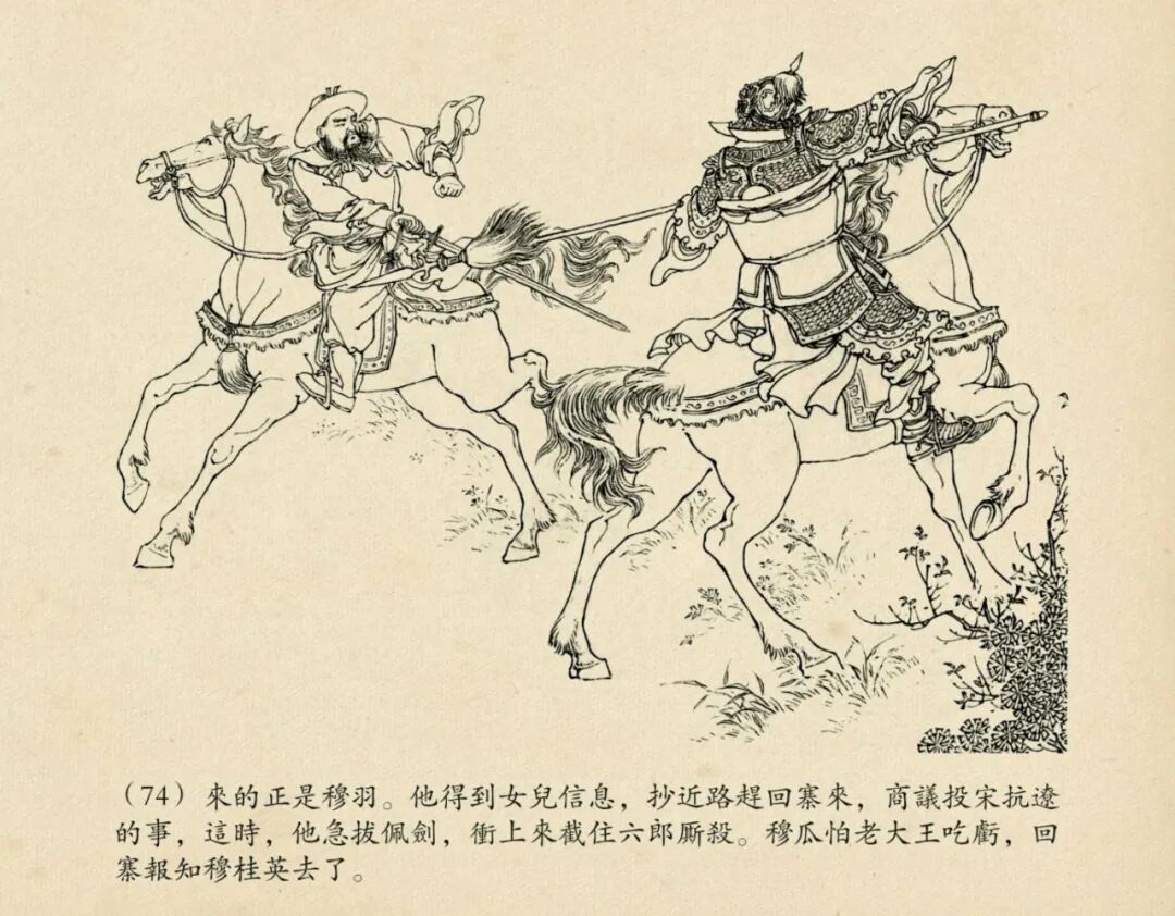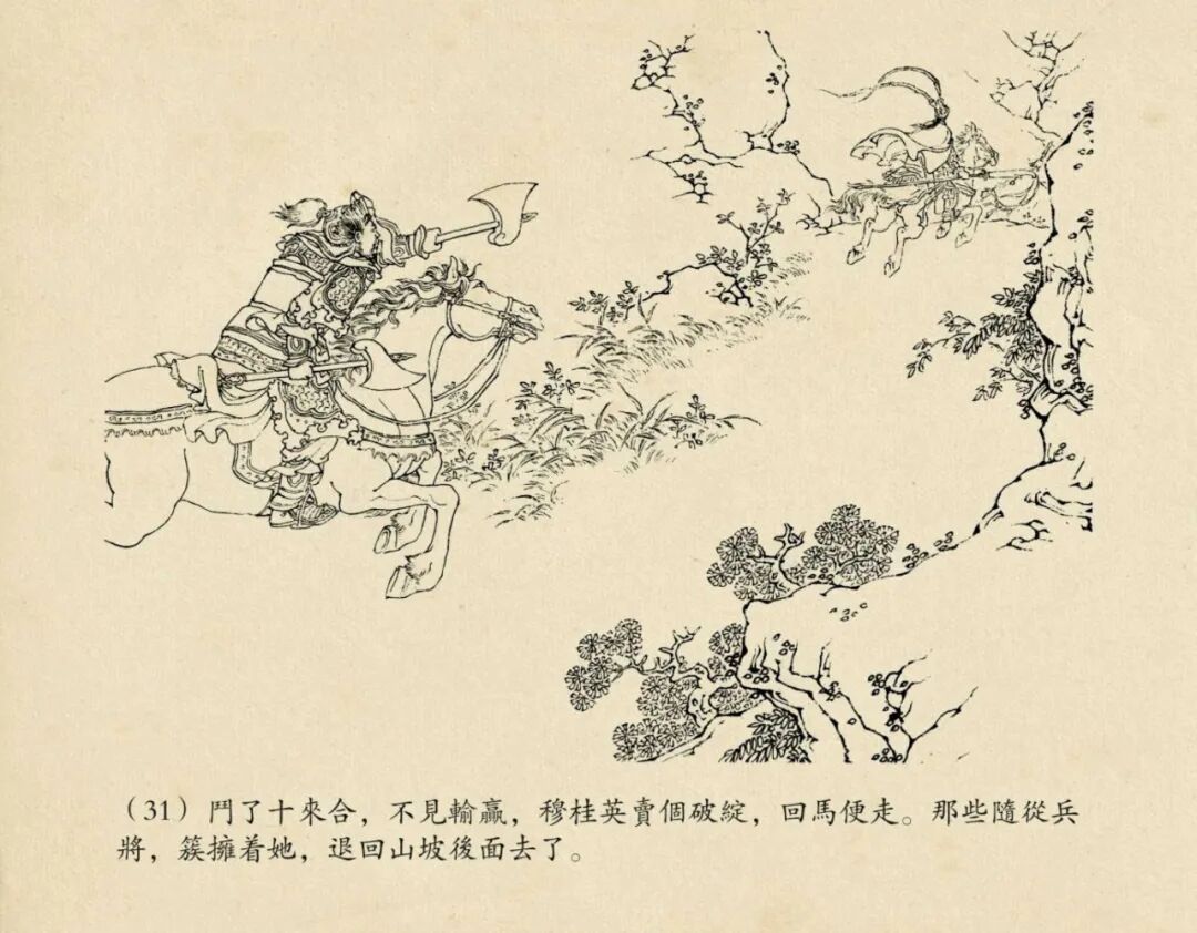 线描的连环画,我一直认为50开的小精才是最佳的版本,把原稿经过适当的缩小之后,线条才更显得更为精致优美。若以大开本来表现,反倒是形、神都散了,线条显得呆板凝滞,不够流畅了。当然钱大师的《穆桂英》是个例外,据说穆姐姐的原稿是画在宣纸上的,而且那线条本来就已经非常精细,以32开,或者24开等大开本来表现,才能充分感受到原稿线条的优美和钱大师那炉火纯青的单线白描技艺。