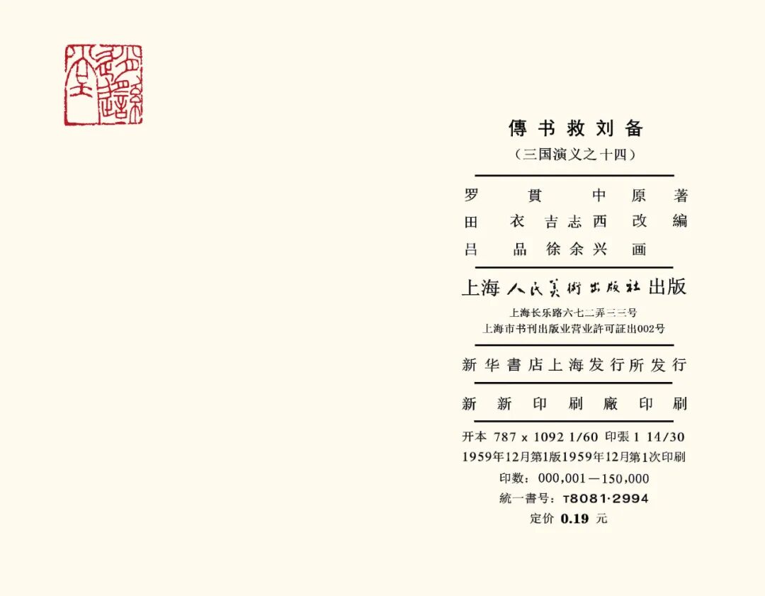 到了1963年6月再版时,其中“关张破曹”的32幅画页并入了第13册《煮酒论英雄》当中。《传书救刘备》分册从此消失。