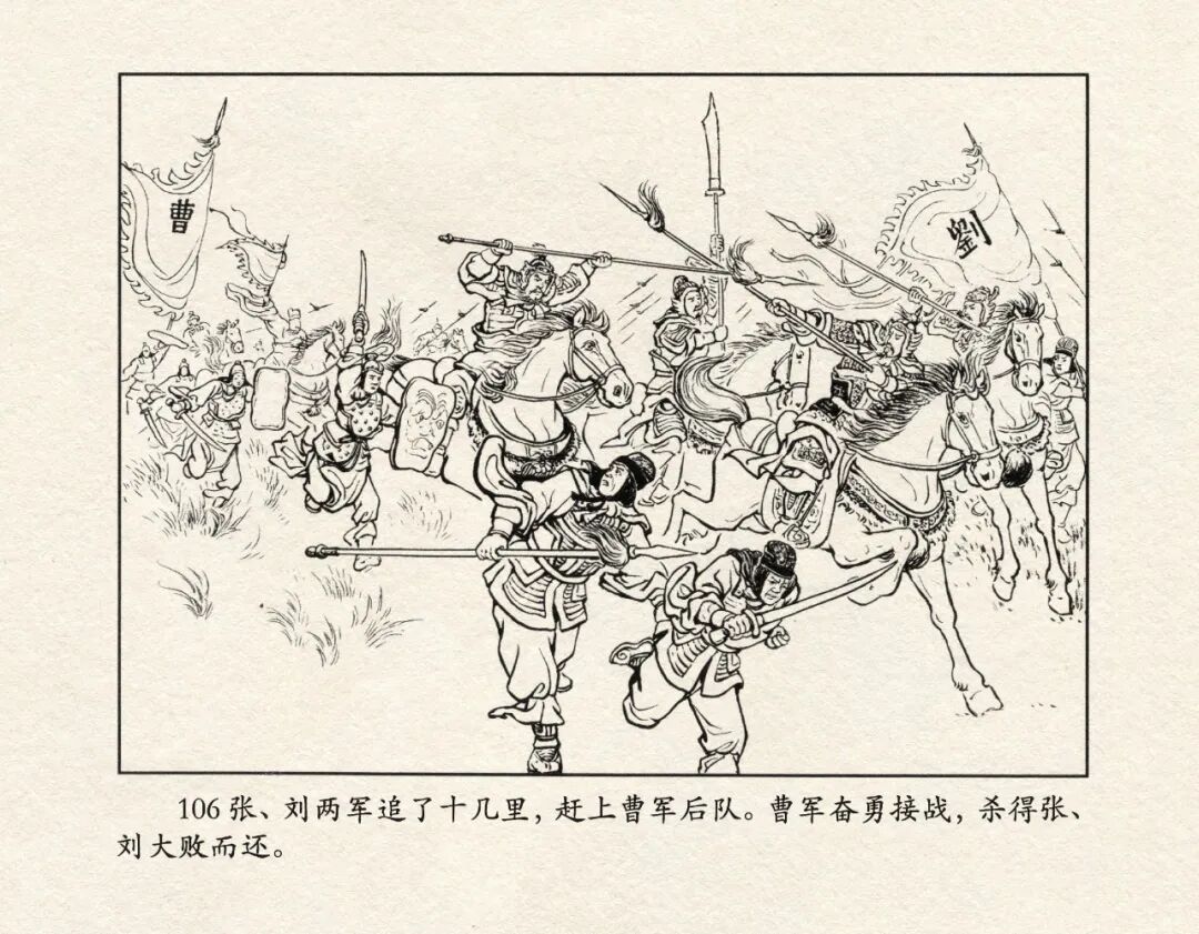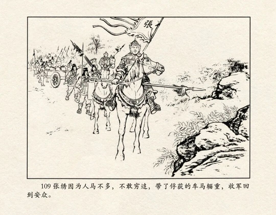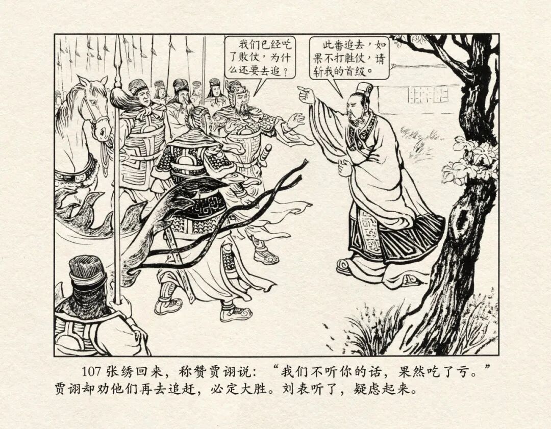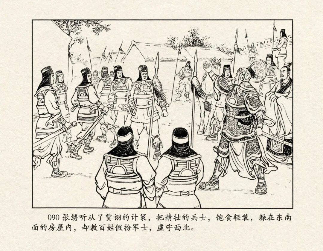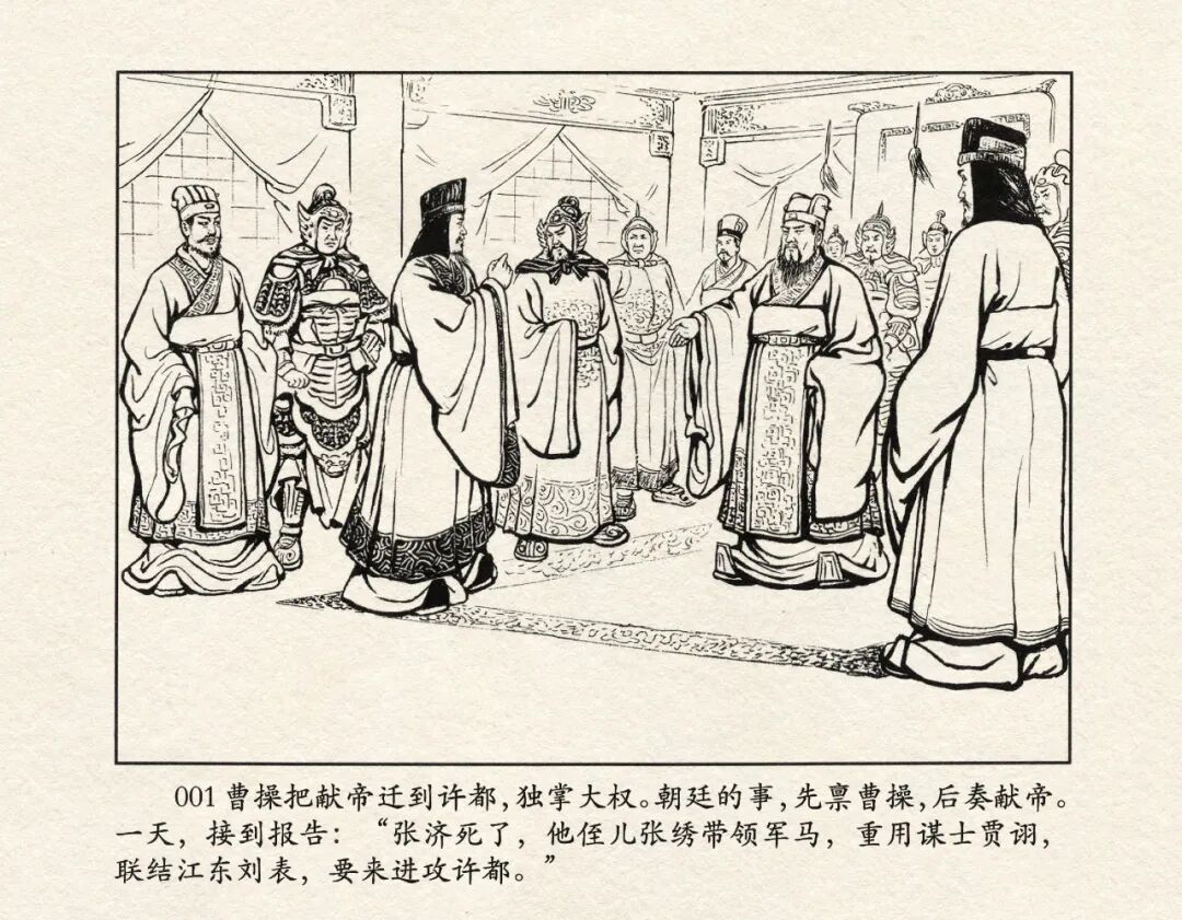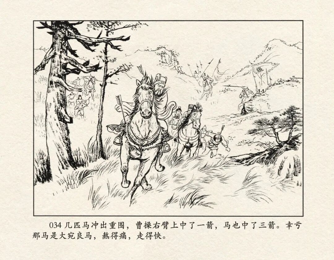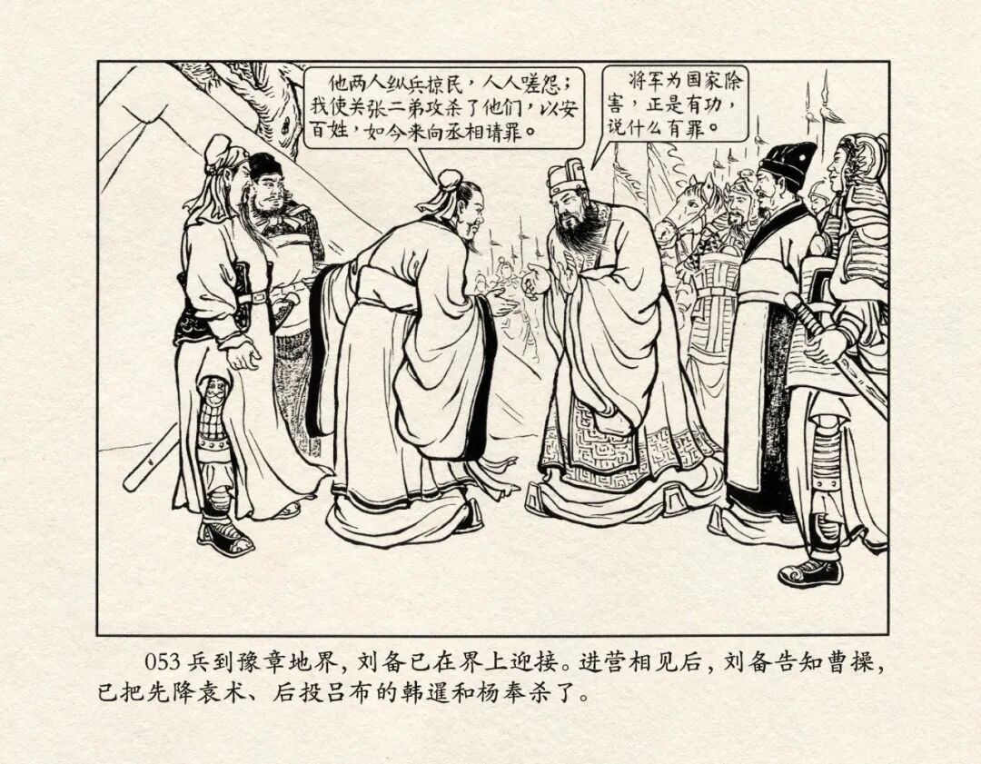 上集《辕门射戟》,叙吕布将画戟为标的,在一百五十步外射中戟上小支,以他的勇武劝止了袁术与刘备的战争。我在网上看了一下这批三国大精的图片,有《战宛城》这本画册。此书的绘制者是甘肃籍画家陈履平,他的名头虽然不及刘锡永、陈光镒、赵三岛等几位大师,但他也独立绘制了两本分册(《战宛城》和《兄弟争王》),水准不俗,特别是在构图造型,以及景物和人物的搭配上,颇显其深厚的功力。相关文章