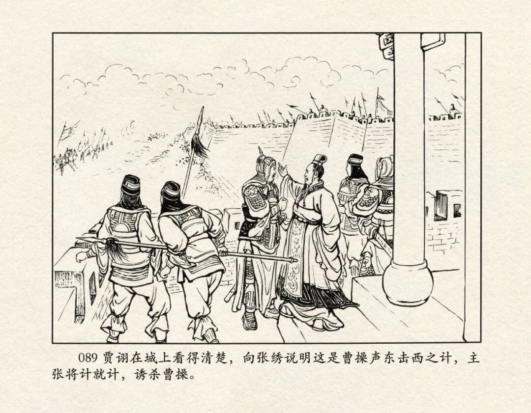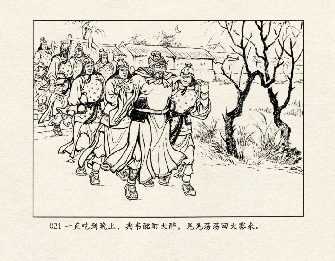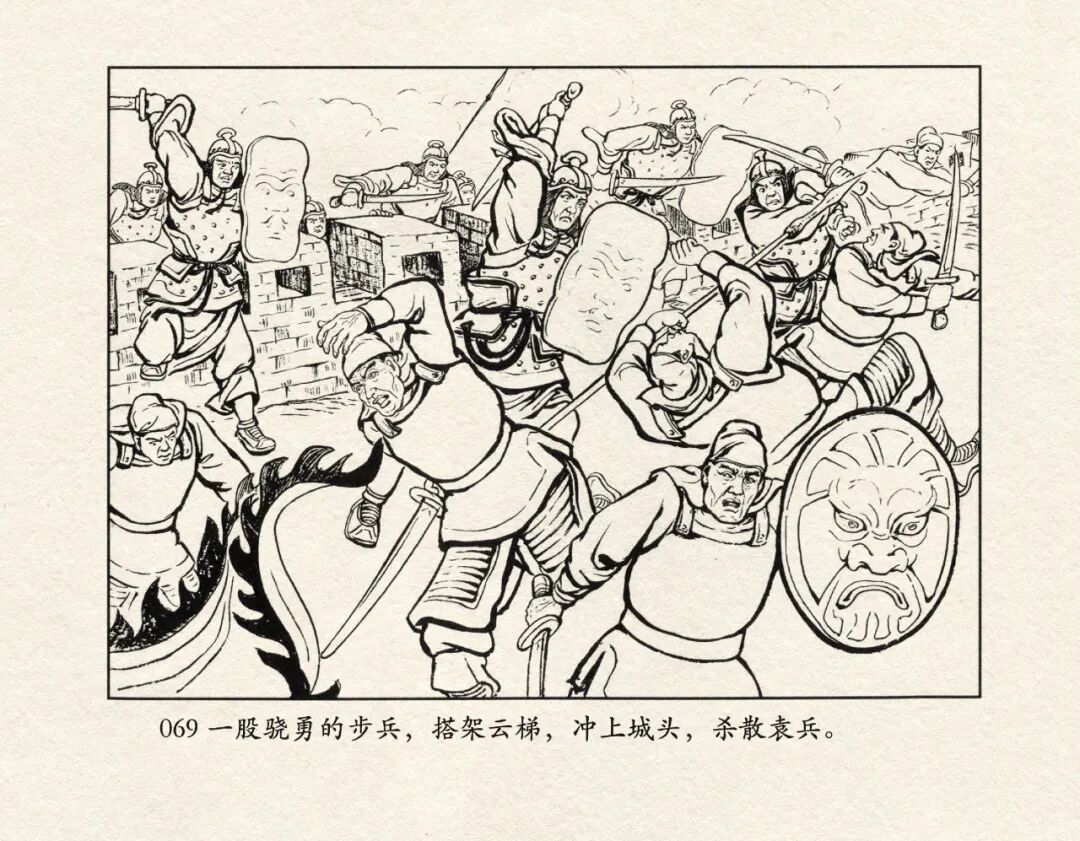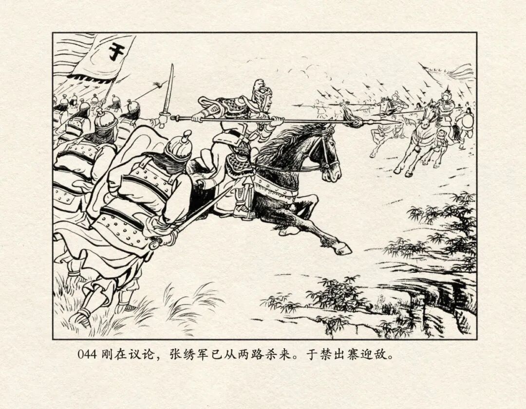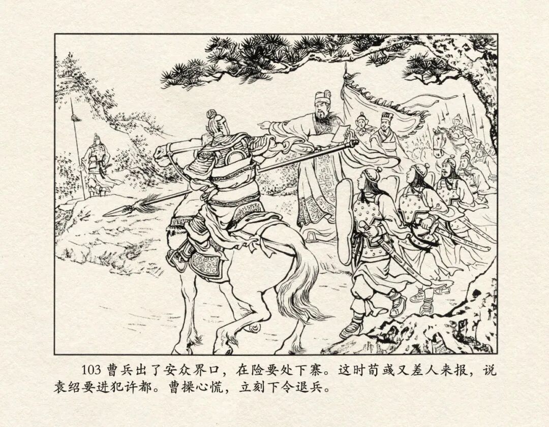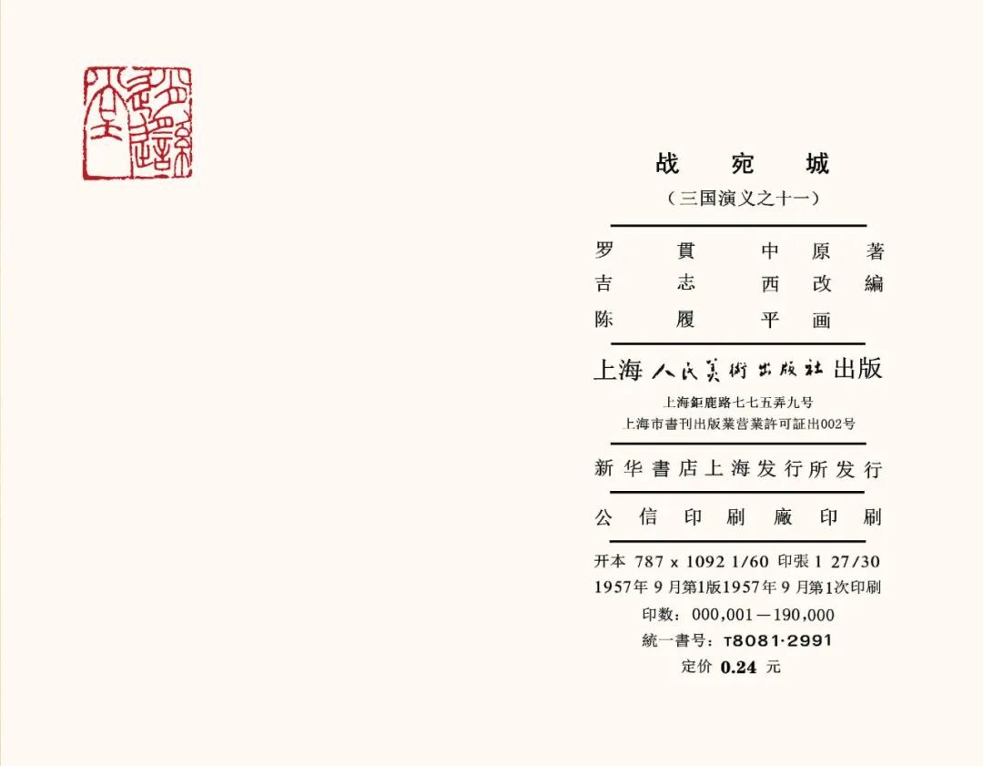 上集《辕门射戟》,叙吕布将画戟为标的,在一百五十步外射中戟上小支,以他的勇武劝止了袁术与刘备的战争。我在网上看了一下这批三国大精的图片,有《战宛城》这本画册。此书的绘制者是甘肃籍画家陈履平,他的名头虽然不及刘锡永、陈光镒、赵三岛等几位大师,但他也独立绘制了两本分册(《战宛城》和《兄弟争王》),水准不俗,特别是在构图造型,以及景物和人物的搭配上,颇显其深厚的功力。相关文章