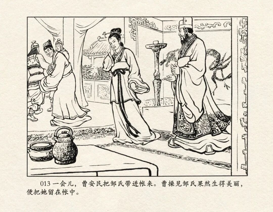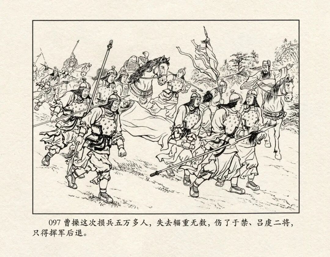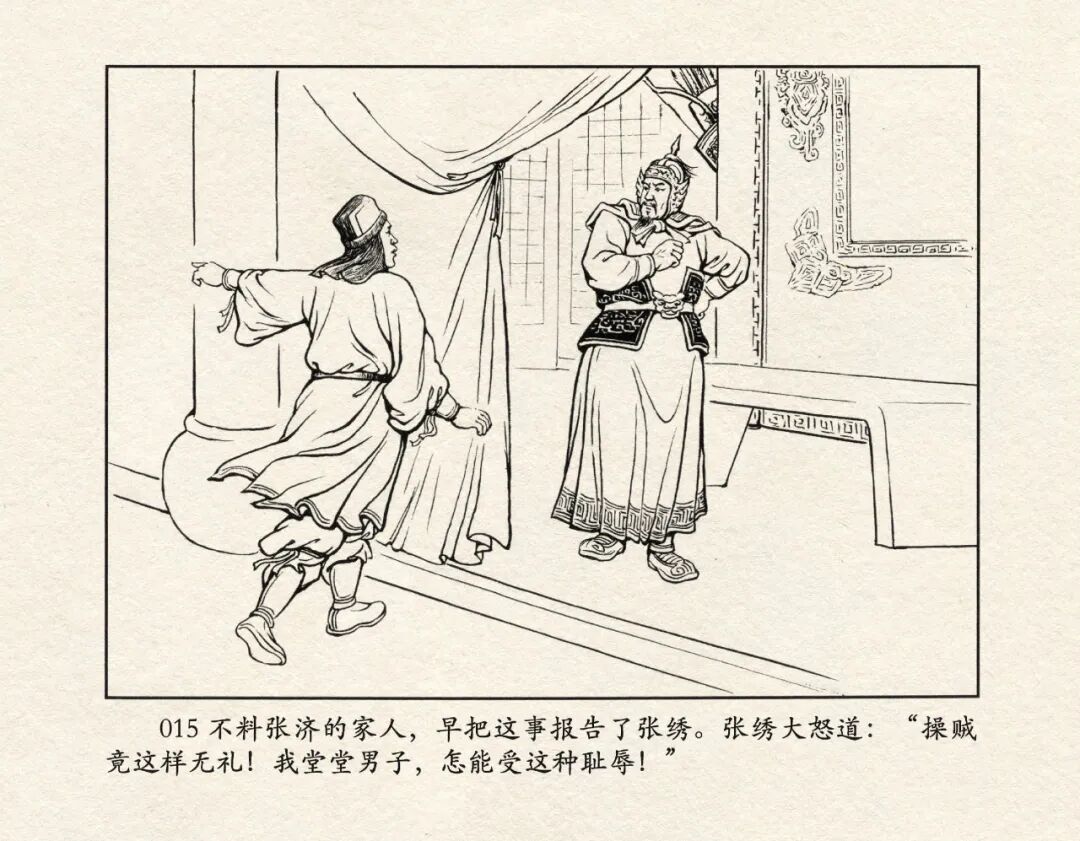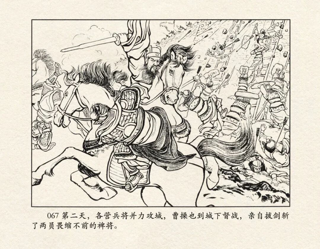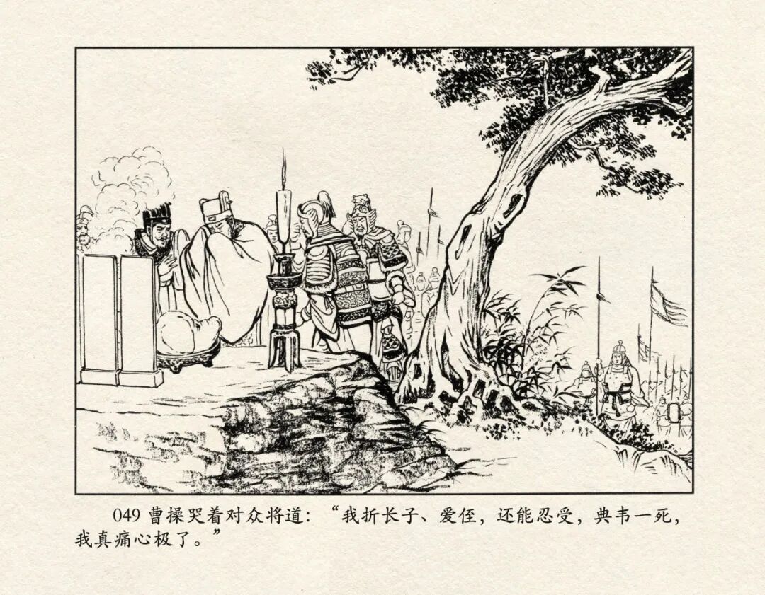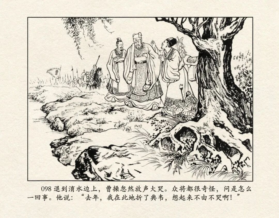 上集《辕门射戟》,叙吕布将画戟为标的,在一百五十步外射中戟上小支,以他的勇武劝止了袁术与刘备的战争。我在网上看了一下这批三国大精的图片,有《战宛城》这本画册。此书的绘制者是甘肃籍画家陈履平,他的名头虽然不及刘锡永、陈光镒、赵三岛等几位大师,但他也独立绘制了两本分册(《战宛城》和《兄弟争王》),水准不俗,特别是在构图造型,以及景物和人物的搭配上,颇显其深厚的功力。相关文章