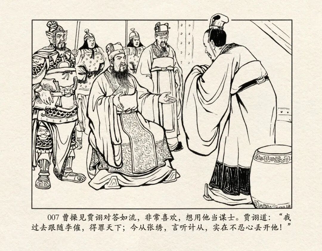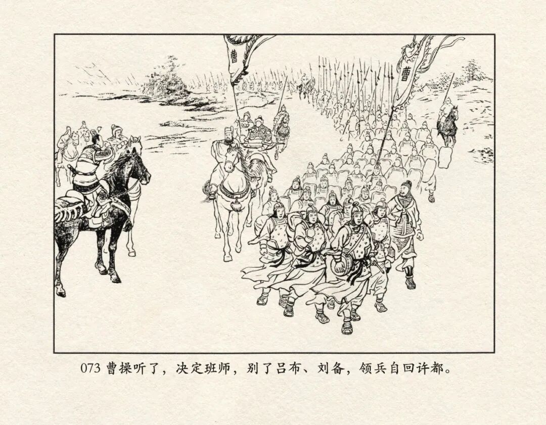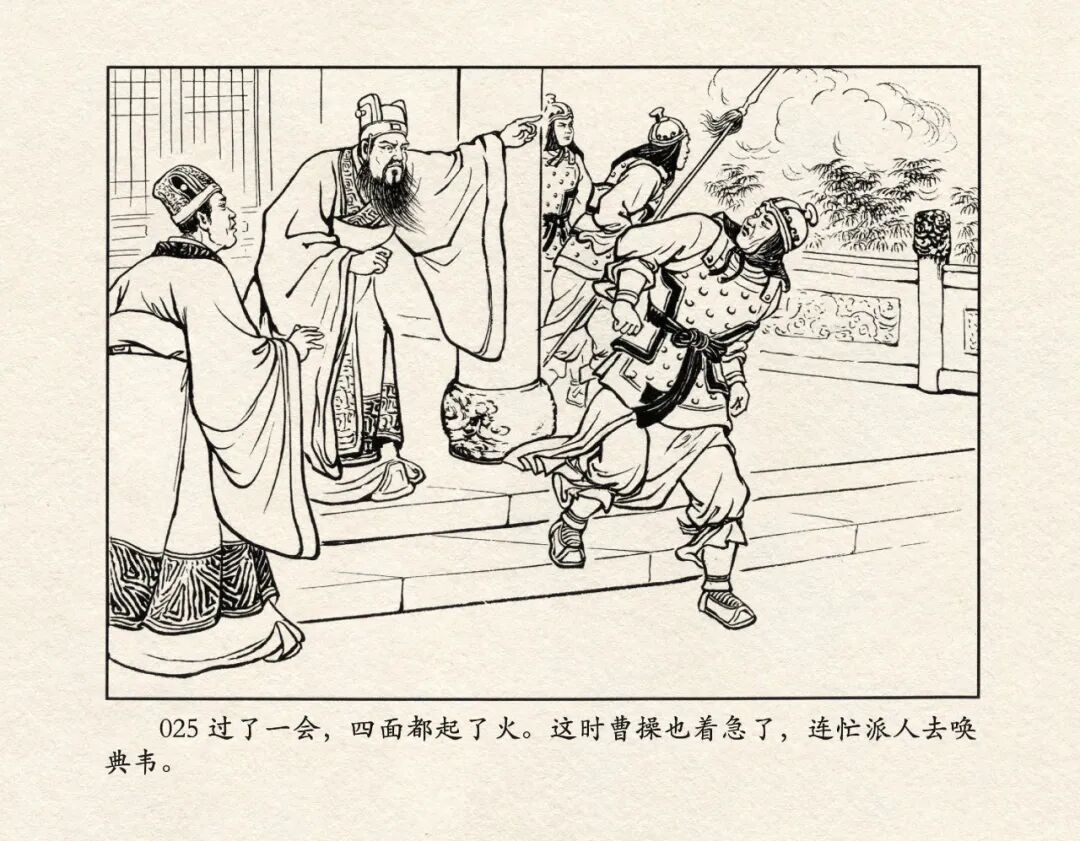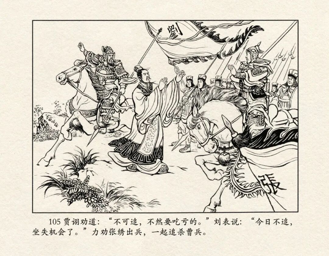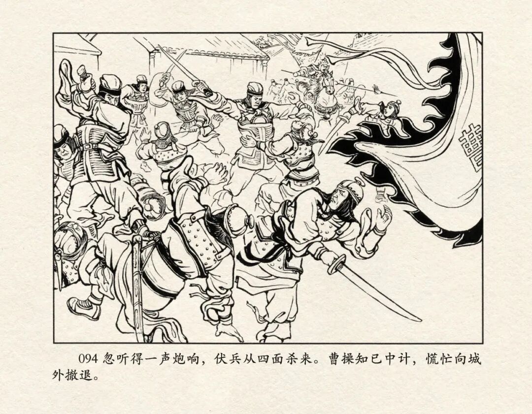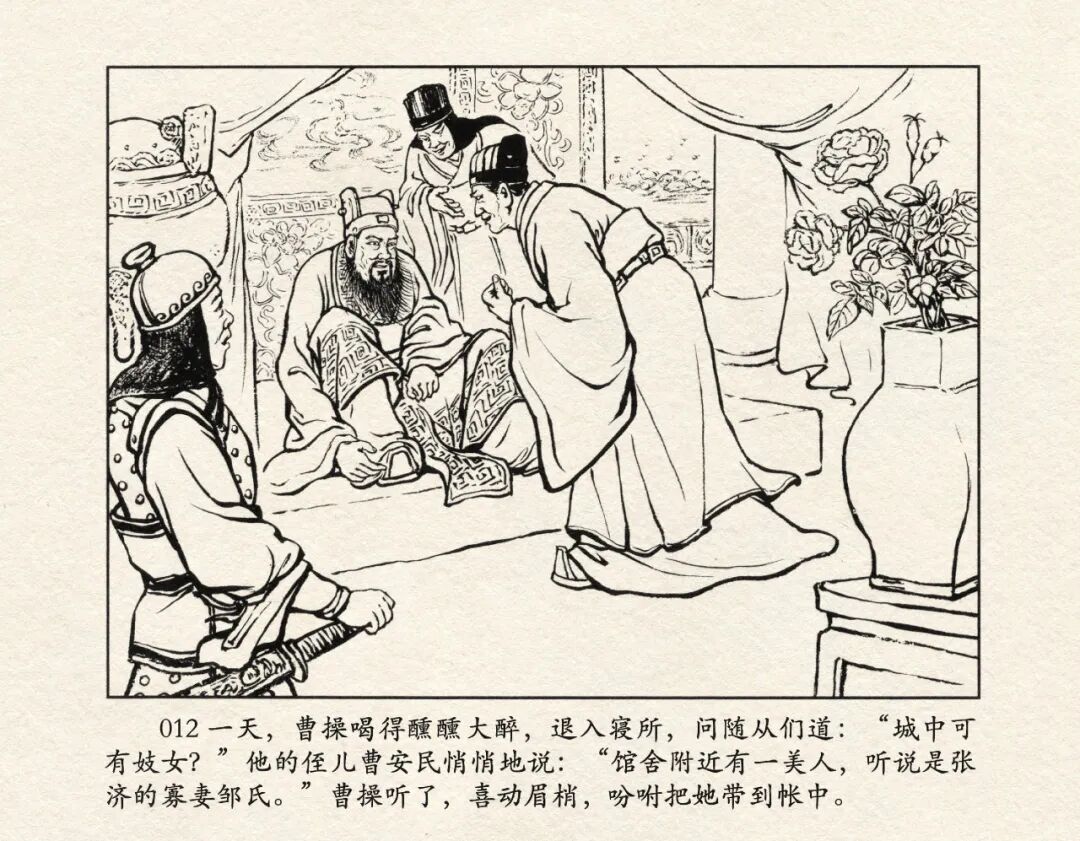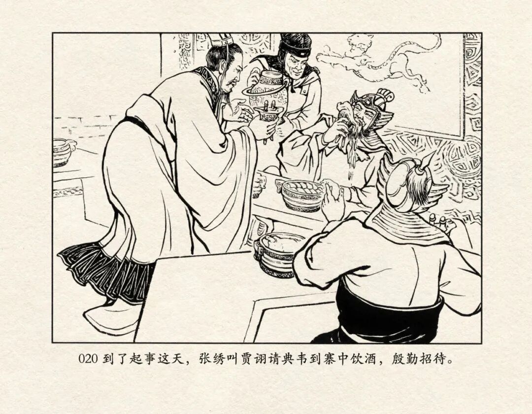 上集《辕门射戟》,叙吕布将画戟为标的,在一百五十步外射中戟上小支,以他的勇武劝止了袁术与刘备的战争。我在网上看了一下这批三国大精的图片,有《战宛城》这本画册。此书的绘制者是甘肃籍画家陈履平,他的名头虽然不及刘锡永、陈光镒、赵三岛等几位大师,但他也独立绘制了两本分册(《战宛城》和《兄弟争王》),水准不俗,特别是在构图造型,以及景物和人物的搭配上,颇显其深厚的功力。相关文章
