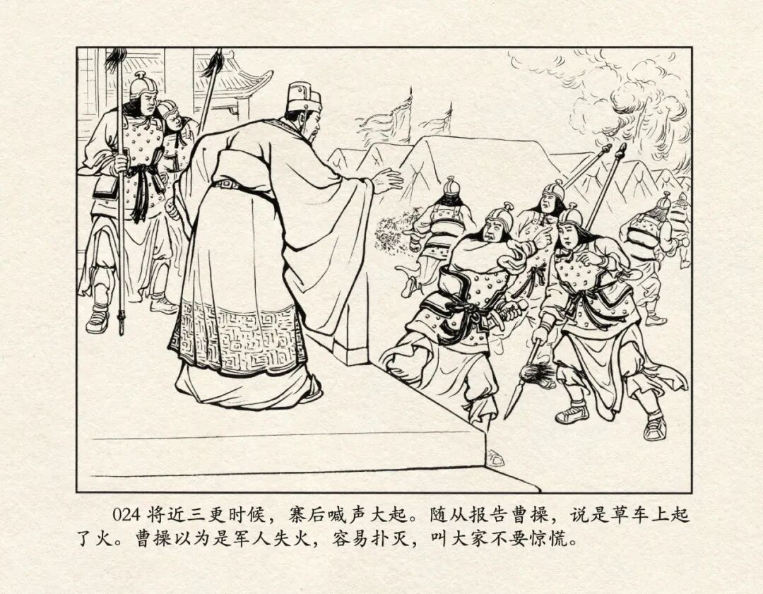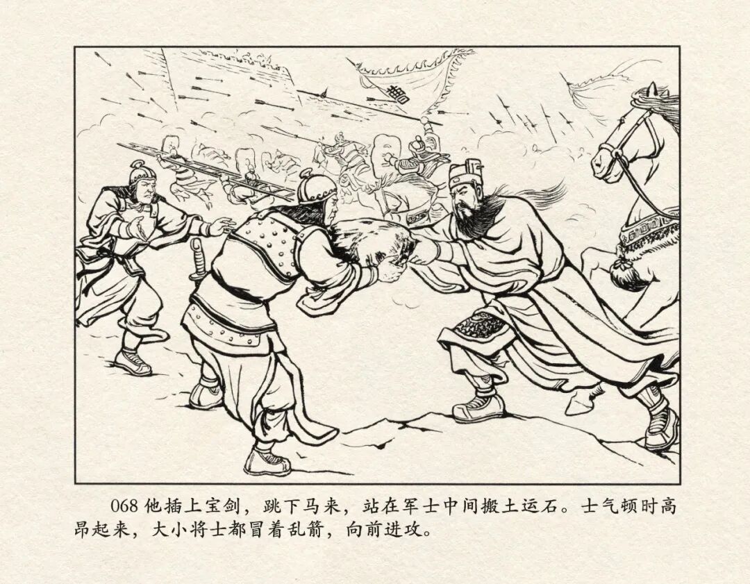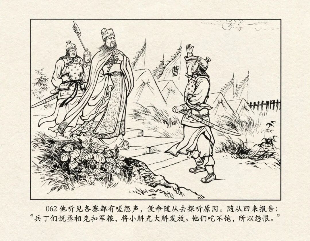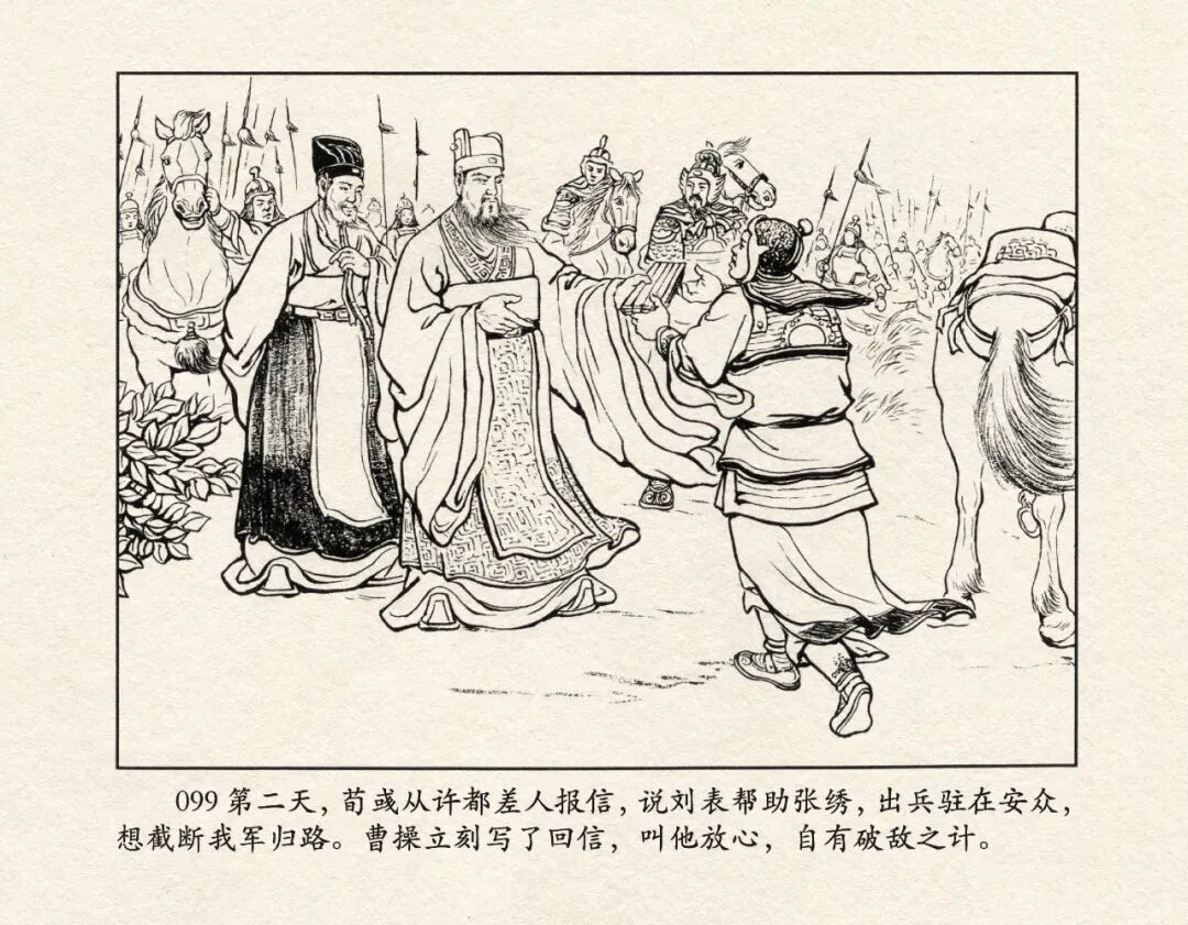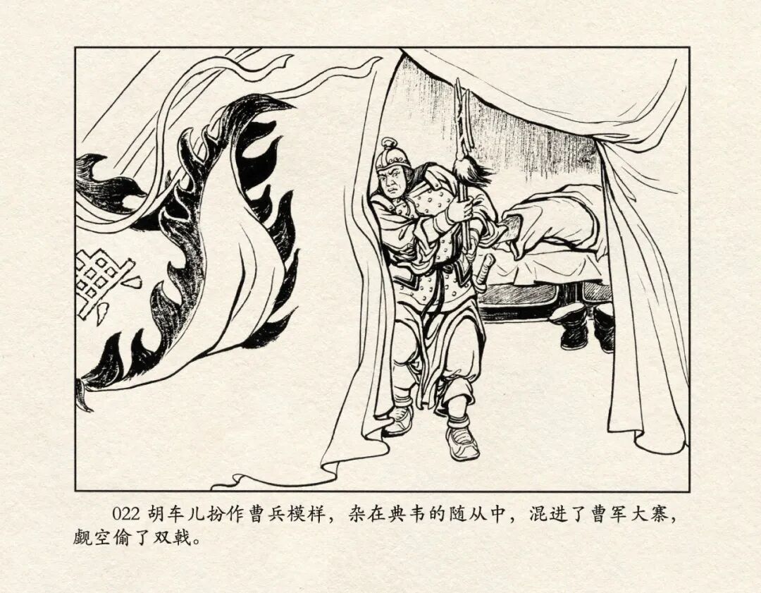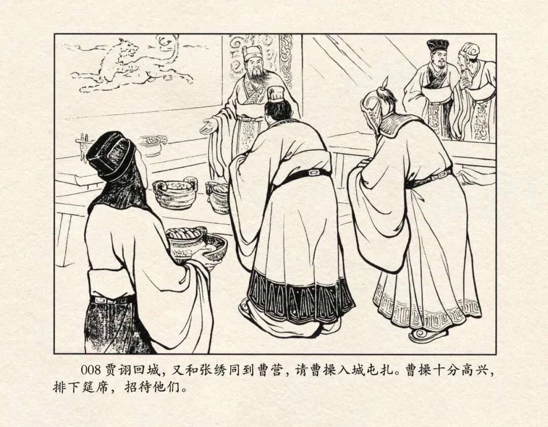 上集《辕门射戟》,叙吕布将画戟为标的,在一百五十步外射中戟上小支,以他的勇武劝止了袁术与刘备的战争。我在网上看了一下这批三国大精的图片,有《战宛城》这本画册。此书的绘制者是甘肃籍画家陈履平,他的名头虽然不及刘锡永、陈光镒、赵三岛等几位大师,但他也独立绘制了两本分册(《战宛城》和《兄弟争王》),水准不俗,特别是在构图造型,以及景物和人物的搭配上,颇显其深厚的功力。相关文章