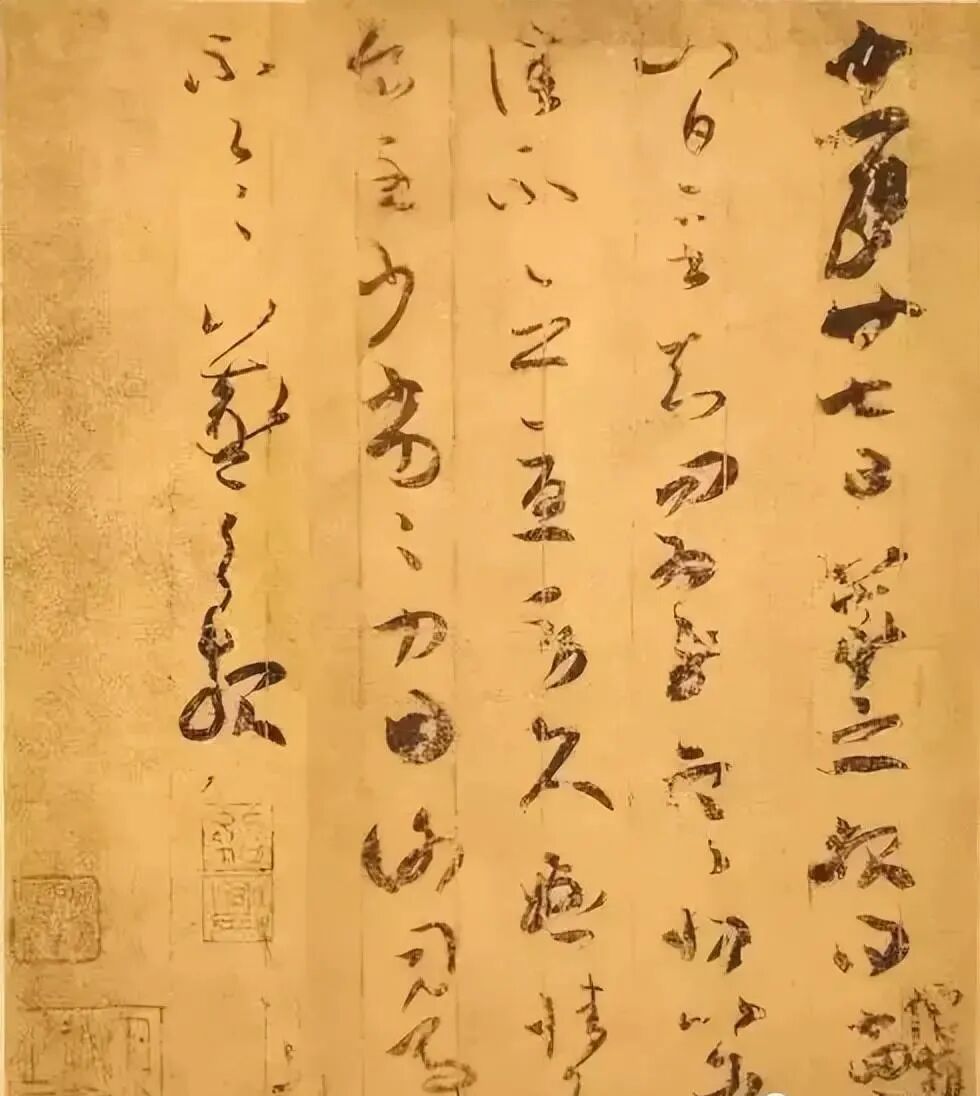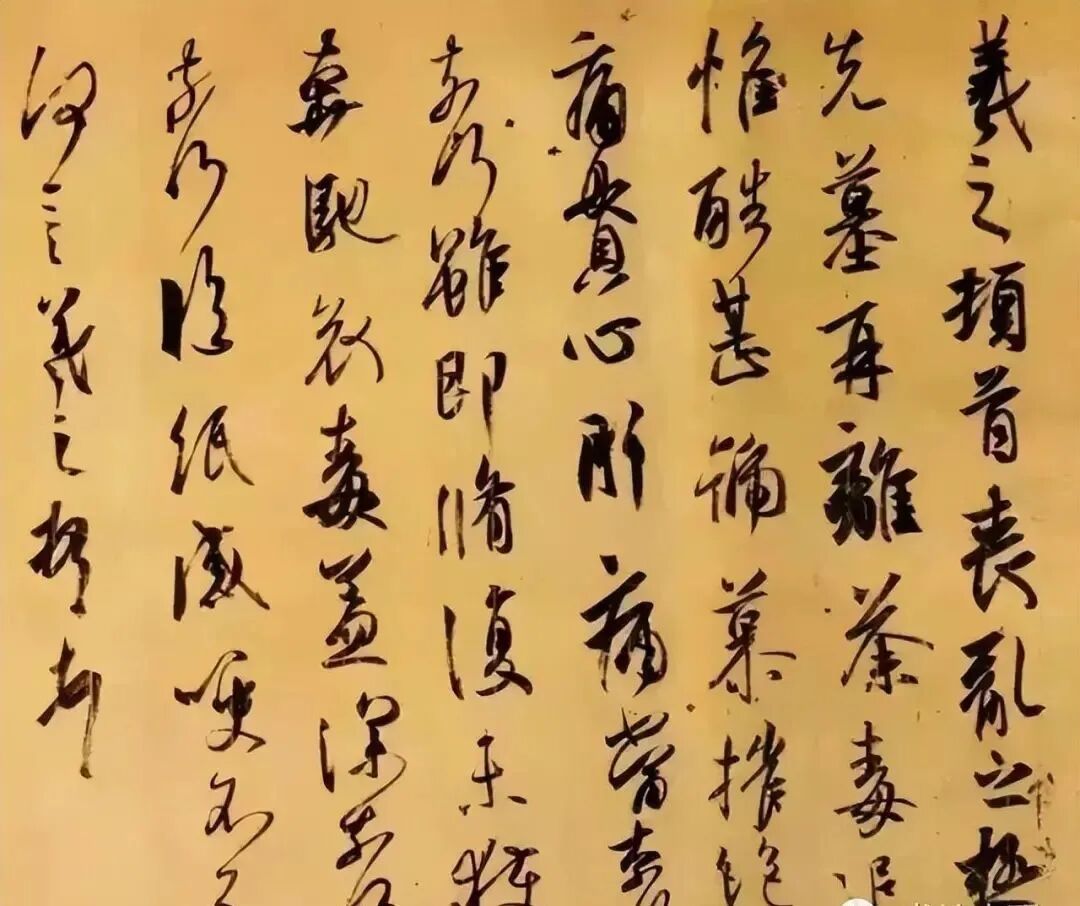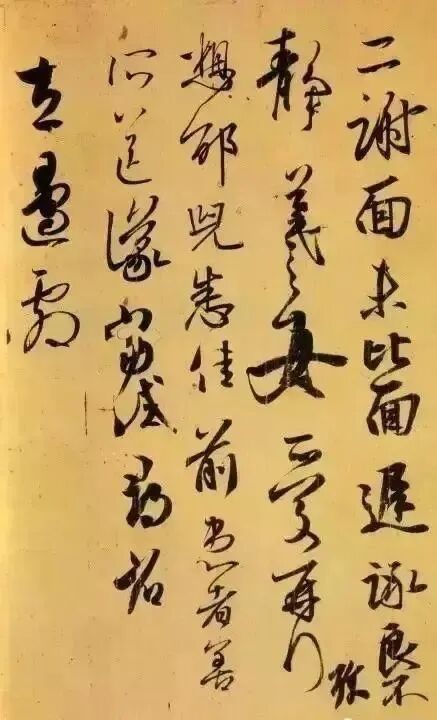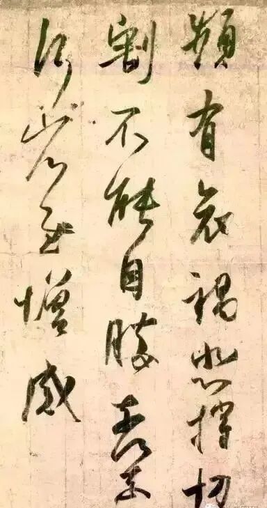 扁线可以形成转(拐圆弯)、折(拐硬弯),且有厚度,这样变化不仅多,而且生动有力。有这么简单吗?我觉得就这么简单。当然,这里面还是有些要求的,比如:正确、合理的使用。大家知道,毛笔是圆锥形的,软的,毫毛是聚拢的。在宣纸上,怎么让毛笔的笔毫听话,也就是说,平行走、拐弯、进入宣纸、收笔这些动作的运行中,毛笔的笔毫别弄得乱七八糟的,可以继续往下写,这就是正确、合理的使用了。古代,钟太傅据说为了得笔法去盗墓,还哭得一塌糊涂。赵子昂给咱留下一句话“用笔千古不易!”,好家伙,这么一弄,大家觉得,靠!这笔法是密不可传的东西啊!于是越弄越神秘了,神秘到了比性还神秘了,呜呼哀哉。。。再啰嗦一句,唐代有个皇帝也跟着凑热闹,问柳公权:“笔法是啥?”,这柳大人也够能忽悠的,说:“用笔在心,心正则笔正!”好嘛,没把皇帝忽悠住,结果把清代那何氏绍基给忽悠了,为了笔正,这位老哥握着毛笔把手腕子都弯残疾了,美其名曰“回腕法”。经过我这么一说,大家是不是觉得笔法很通俗了?我曾请教田树苌先生问笔法,先生问我:“笔法就是筷法,你会用筷子吗?!”\\\\四、再说说用笔前几天,我给朋友举了一个例子:笔法(或者用笔吧,咱尽可能简化,别太学术了。)其实就类似一个小区的自来水供水系统。为什么这么说呢?我们要做的事情,是写一个字、一行字、一张字,那么这里面就涉及到笔法的连贯性问题。基于此,我说,高手的笔法是整篇通畅的。如果一个小区的自来水管道不通畅,那是设计的失败,豆腐渣工程而已!当然,起来、下去的动作幅度不一样。我曾经给朋友举了一个很黄很暴力的例子,这里按下不表(公众场合人太多,大家亦会就行了!)比如:一些笔画类似兰花叶,是不?怎么造成的?粗细、翻折、曲直造成的。那么,我们可以把笔画看成舞蹈演员的长袖,长袖在飘动,在挥舞,笔画就有了立体感和动感,还有千变万化的形状。当然,笔姿是否优美,这要看舞蹈演员是否会玩了。《姨母帖》、《初月帖》就是穿着长袍的男性武术高手在表演长拳,笔姿的质感厚重、动作开合有力。《寒切帖》就是穿着厚厚棉衣的老头子,在漫不经心的打太极,一招一式相当到位,而且内敛不张扬,真气弥漫,所有招式都蕴涵在不大的动作里面。《远宦帖》类似短小的擒拿功夫,动作(线条长度)幅度小,笔姿非常精干、丝丝入扣,局部下动作非常多,类似利落、快捷的奇妙手法。说到这里,我以为,看古人的书法(宋以前的)基本上是轻歌曼舞,舒缓优美。而看当代的书法,就知道我们这个时代的舞蹈一定是:的士高、街舞或者手脚抽筋的舞蹈了。于是,毛笔碰到那个凸起的“棱线”,就跳起来---落下,形成了带有“截面”的笔画。甚至现在有的人为了追求这种效果,在书写时候纸张下面放一根铁丝,有意造成纸张突起。3、如果真的就是诚心往界格上面书写,那为什么在同一条格线上面的笔画,不都有“截笔”呢?我想,没有人用笔是起笔、行笔、收笔都一样的笔锋,那样肯定没有绞转。所谓中段,很多人也一直在说这个问题。甚至说,魏晋以后线条中段越来越差,为啥?上回我说到线条中段的问题,有的人说魏晋以后中段越来越弱化。我是这样考虑的,中段的力量、质感是和用笔分不开的,尤其是和字的大小有着极其重要的关系。为什么这么说呢?3、后来,字越写越大,相应的,线条的长度越来越长,所以一根长假如10厘米的线条,我们来划分一下中段的长度-----起笔2厘米,收笔2厘米,那么中段就有了大约5--6厘米的长度,这么一个线条长度空间需要多少时间长度呢?(请允许我在这里很不学术也很不严谨的用了时间长度和长度空间这两个自创的概念)显然,这么长的距离和所需要的工作时间,必然让书写者很难在此做出什么合理的花样来,于是大字乃至魏晋以后字越来越大的情况下,中段越来越不好处理。那么明清大字草书呢,显然他们用了线条的缠绕来打乱结构和字与字之间的视觉,以此来弱化我们对于线条中段的关注。比如,王羲之写“天道”俩字草书,那么左一笔、右一笔的摆动,势必会形成线条转折的折叠,这也就是说,线条是扁的,扯远了。。。我从记事的时候就听一些老先生常说:“王羲之那叫一个厉害,笔笔中锋啊!”我现在觉得,谁要写字笔笔中锋那才是傻子!那就如同用剑,一下一下砍,一下一下剁!那绝对不是高手,高手是:剁、砍、片、切、抹、刺、挑。。。都用的。高明的书法家手中的毛笔就是剑。为什么这么说?比如:我们用刀切带肉皮的生肉(不会做饭的你是理解不了啦!),直接用刀直立下去,那可能切不动。如果,你用到在生肉皮上把刀向前推--同时用力下压,那样刀就且进去了,对不?(请切过生肉的朋友们鼓下掌!)或者:护士输液的时候,用针头把你的肉皮轻轻挑起来一些,然后再推进你的肉--血管,是不?(请护士也鼓掌一下!)简单地说,这是一个力学原理。具体哪个原理我也不知道,但是做事情是由表及里的推进。而,用笔何尝不是呢?!再啰嗦几句:很多人不解笔法,知其然不知所以然,学《兰亭》,总是把起笔的小剑剑当作线条的一个组成部分,并不知道那是一个前奏的动作,于是学了那个形,但永远不知道那个小尖尖干嘛用。于是,不带那个拐弯的小尖尖,似乎就不是王羲之,唉。。。。一地鸡毛!《姨母帖》,行楷,载原裁于唐人摹《万岁通天帖》。硬黄纸本。纵26.3厘米,横53.8厘米,藏辽宁博物馆。《万岁通