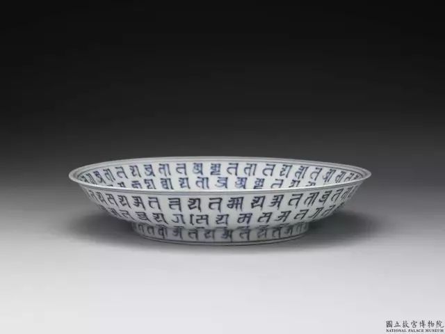 明 弘治 青花梵文盘·台北故宫博物院藏