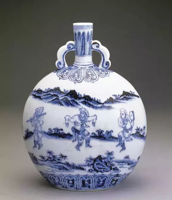 明永乐·青花人物扁壶·台北故宫博物院藏