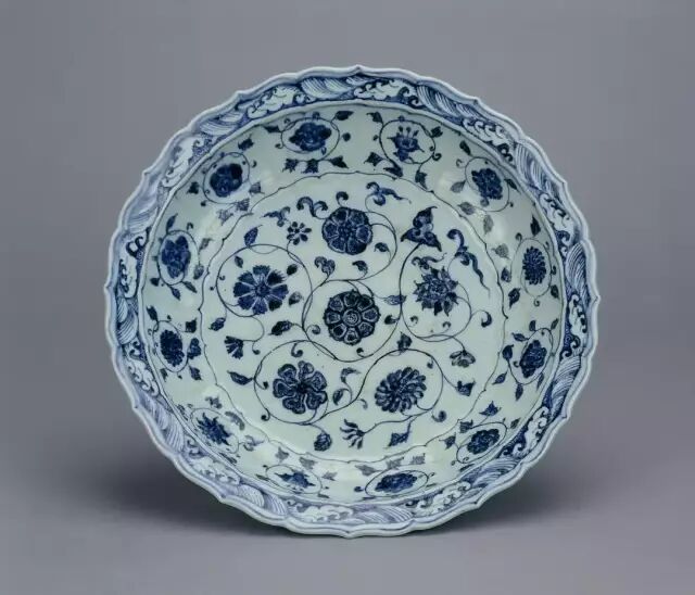 明宣德·青花缠枝莲纹菱花口盘·武汉博物馆藏